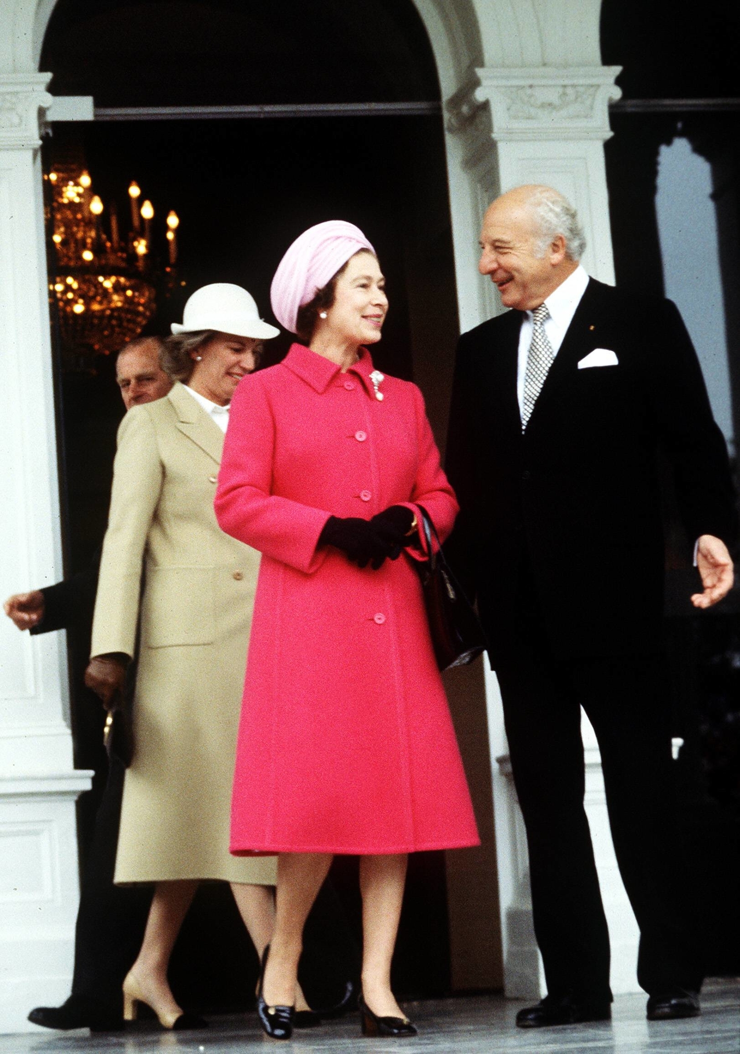 Tätä värien liittoa on pidetty haastavana, mutta turhaan. Monet muotigurut hurahtivat väriyhdistelmään pari vuotta sitten. Kuvassa kuningattaren tyylinäyte vuodelta 1978.