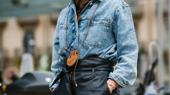 Nahkahousut, söpö neule ja 90-luvun käsilaukku