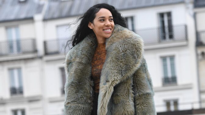 Värikäs karvareunustakki yhdistettynä 70-lukua henkivään asuun on varma katseiden kääntäjä.