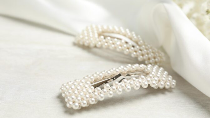 Sliippaa geelin avulla kutrit keskijakaukselle ja pyöräytä latvat ponnarin avulla huolettomalle nutturalle. Viimeistele sliipattu look hiuslakan avulla, jolloin kutrit pysyvät tiukasti kammatussa muodossaan. Kampauksen juju piilee näyttävissä hiuskoristeissa, joiden osalta Kardashian on luottanut kolmeen suureen helmillä koristeltuun pinniin. Voit kiinnittää pinnit vain toisen korvan taakse, tai halutessasi jakaa hiuskoristeet molemmin puolin päätä.
