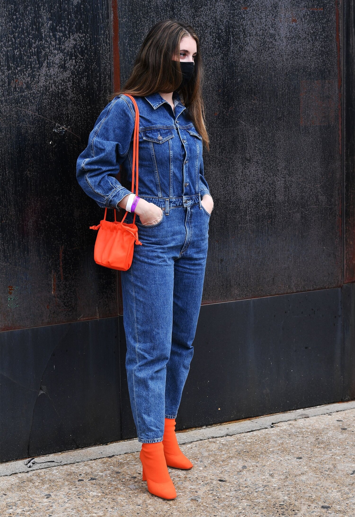 Katumuodissa valloillaan ovat etenkin kirkkaat värit. Vihreä ja pinkki näkyvät vahvasti, mutta toki myös neutraaleja sävyjä nähdään muodissa tänäkin vuonna. Farkkua, vekkihameita ja korsetteja ei myöskään voi unohtaa, kun puhutaan vuoden 2021 muodista. Ja ne näkyivät vahvasti myös New Yorkissa.