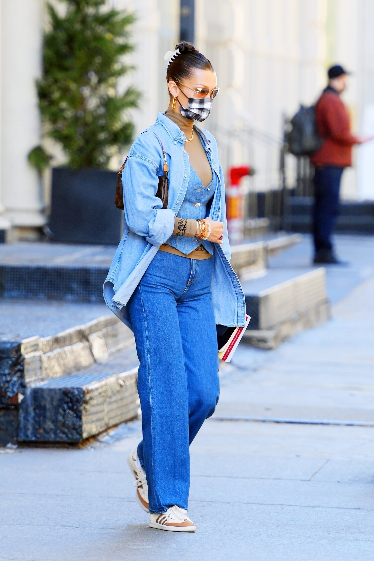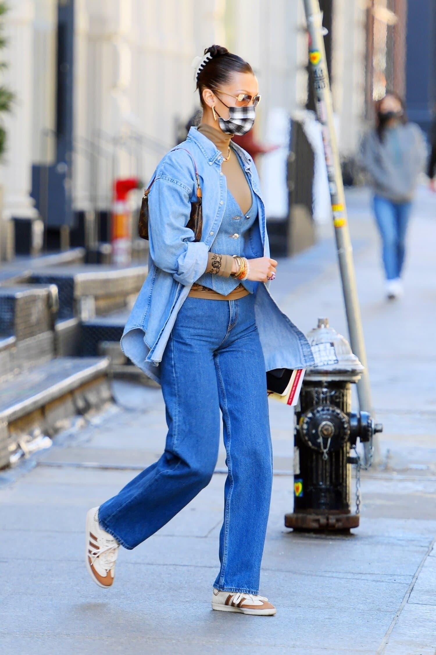 Malli Bella Hadid, 24, on vienyt trendin kuitenkin seuraavalle tasolle. Hänen kaupunkilookistaan nimittäin löytyy denimiä triplasti.