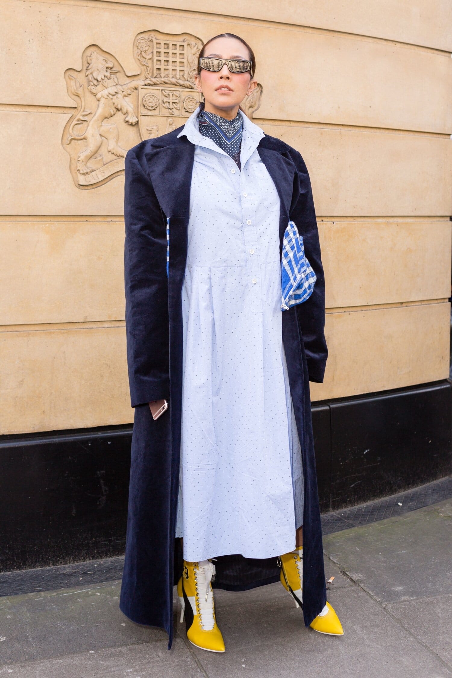 Yksinkertaisen tyylikäs asu koostuu siis valkoisesta mekosta, saappaista sekä sinisestä villakangastakista. Kolme yksinkertaisen tyylikästä palasta, jotka löytyvät jo valmiiksi monen vaatekaapista.