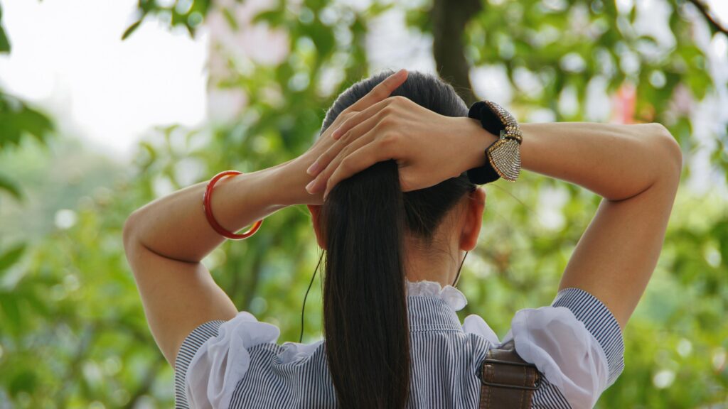 Kyseessä on siis tapa, jolla hiukset saa kiedottua kiinni noin viidessä sekunnissa ilman hiuslenkkiä. Nopeaa, nokkelaa ja tarpeellista, sillä hiuslenkeillä on tapana kadota kuin tuhka tuuleen.