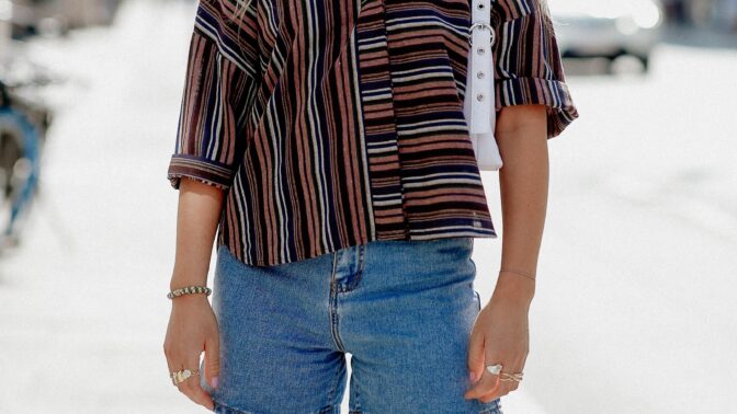Pidemmällä lahkeella varustetut farkkushortsit ovat tyylikkäät ja siitä syystä oiva valinta arkeen ja jopa toimistoon.
