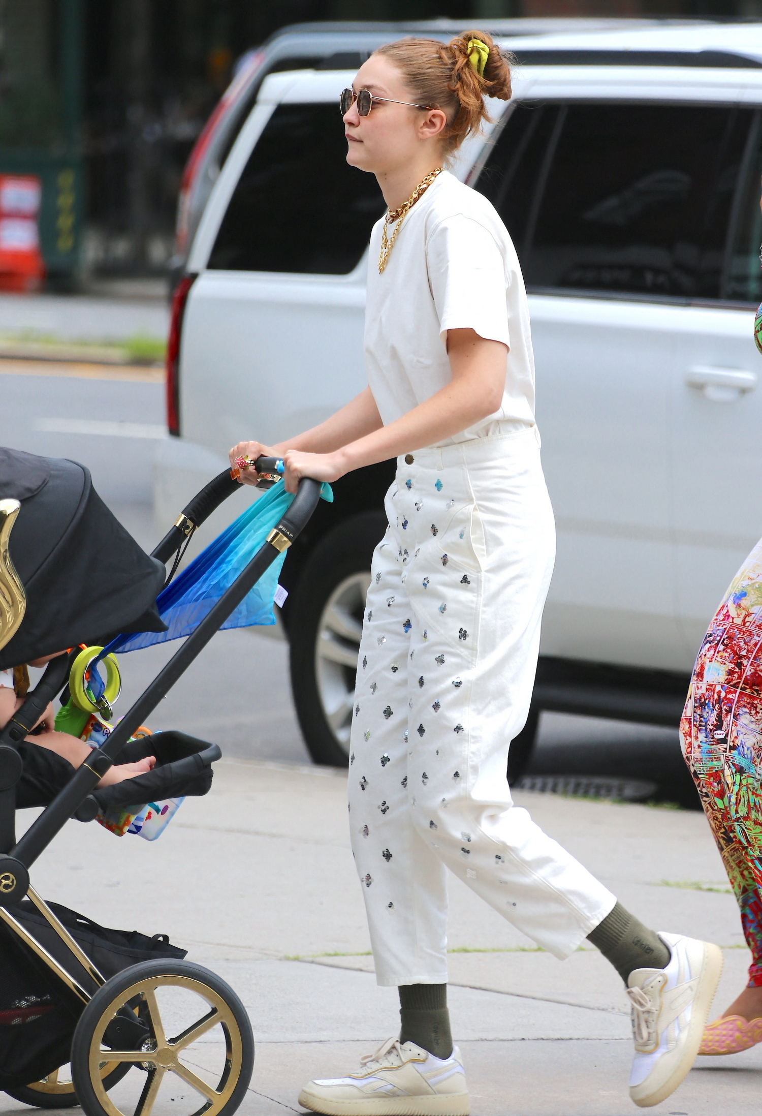 Tällä viikolla Hadid luotti kokovalkoiseen ulkoillessaan vauvansa kanssa New Yorkissa. Katso kuvat huippumallin kuluneen kesän parhaista asuista.