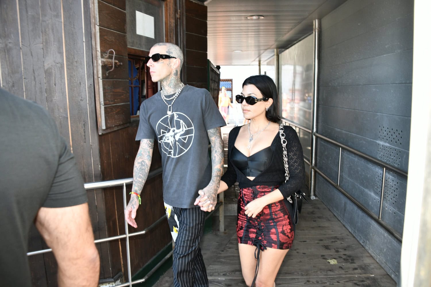 Kourtney Kardashian, 42, lomailee parhaillaan Italiassa rakkaansa Travis Barkerin, 45, kanssa. Pari ikuistettiin paparazzien toimesta yhteiskuviin, joissa huomio kääntyi Kardashianin nokkelaan asuvalintaan.