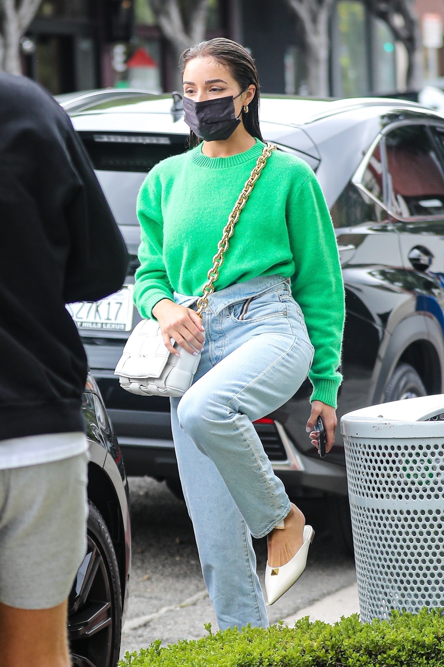 Väreistä kirkkaimmin syyspukeutumisessa loistaa kuitenkin vihreä, joka tuntuu olevan juuri nyt usean maailmantähden mieleen. Malli Olivia Culpo antoi oman tyylinäytteensä siitä, kuinka trendiväri yhdistetään osaksi rentoa mutta näyttävää arkipukeutumista.