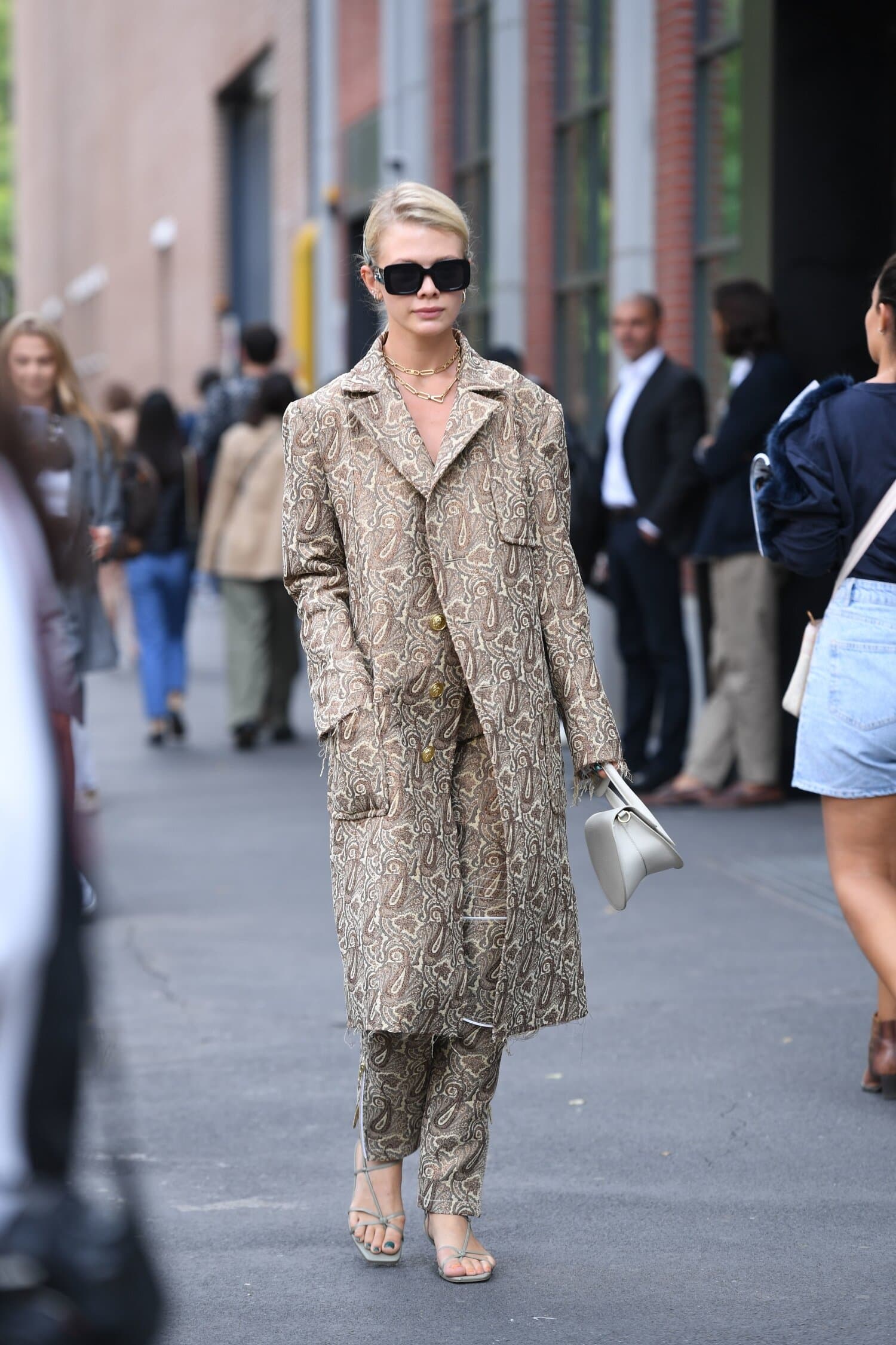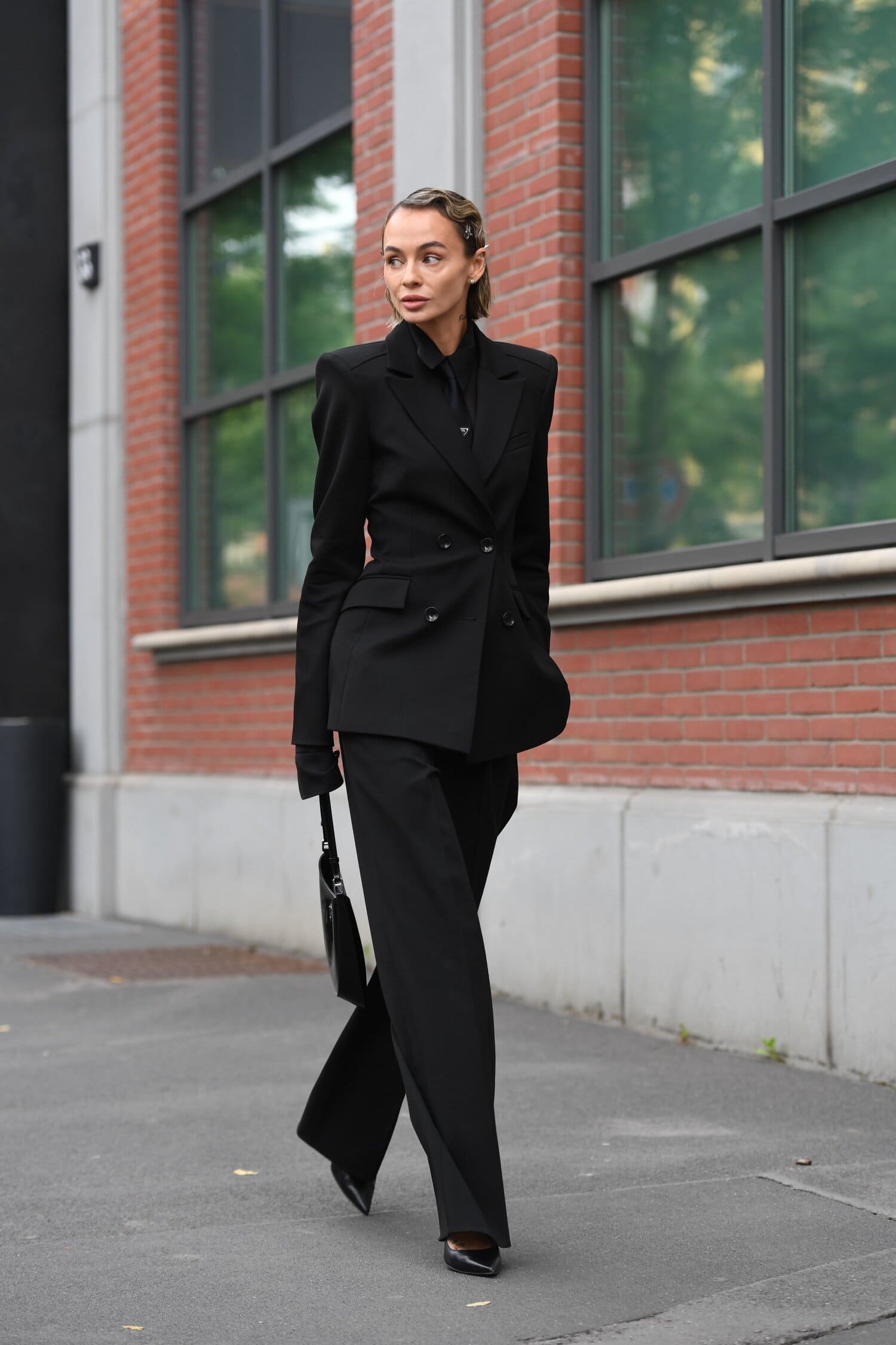 Milanon kaduilla nähtiin myös paljon kokomustia asuja. Samaan tyyliin turvautui myös Kim Kardashian niin Met-galan lookissaan sekä gaalan jälkimainingeissakin. Muotiviikoilla nähtiin myös lukuisia kokoneuleasuja, joissa väripaletti oli lempeän ruskea. Viime vuosien hittityyli siis jatkaa ajankohtaisena. Yksinkertaisin ja takuutyylikäs tie hallitsevaan trendiin on pukea päälle housupuku, jonka moni tyylikonkari on osoittanut toimivan niin arjessa kuin juhlassakin.