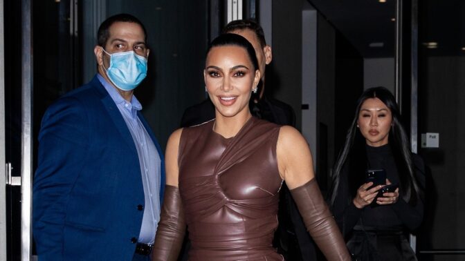 Hiljattain Kardashian kuvattiin nahka-asussa, jossa jokainen palanen on kohdallaan. Hän oli pukeutunut midimittaiseen nahkamekkoon, jonka seuraksi hän oli valinnut samaa väriä olevat hansikkaat.