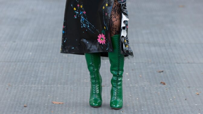 Yli polven ulottuvat saappaat ovat tänä talvena erityisen trendikkäät. Yhdistä ne a-linjaiseen hameeseen ja neulepaitaan ja näyttävä look on valmis.