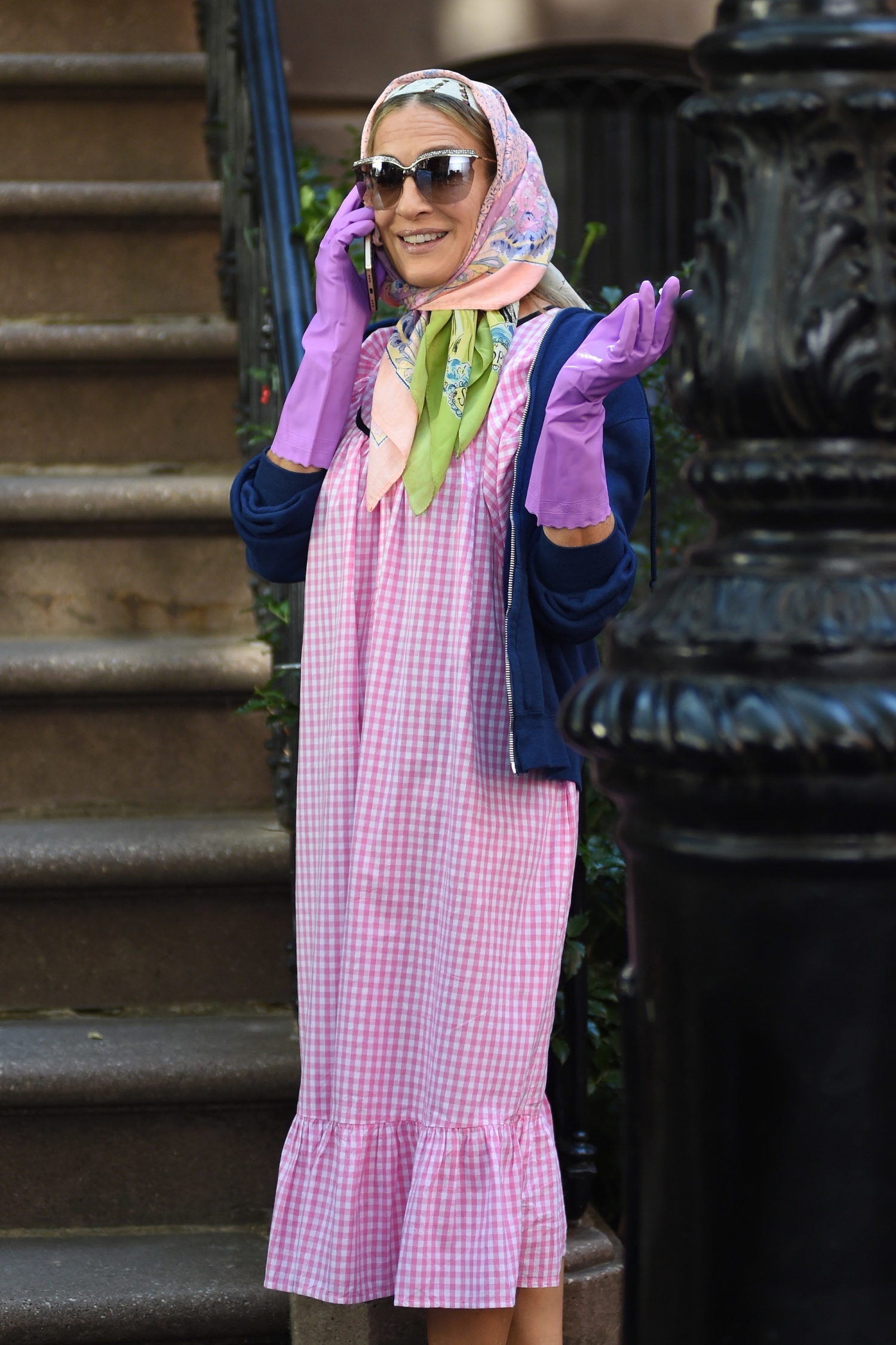 Bradshaw luottaa tyylissään usein asusteiden voimaan. Hiukset peittävä huivi, suuret aurinkolasit sekä hansikkaat luovat tyylikkään, mutta samalla ajattoman kokonaisuuden. Vai mitä mieltä olet?