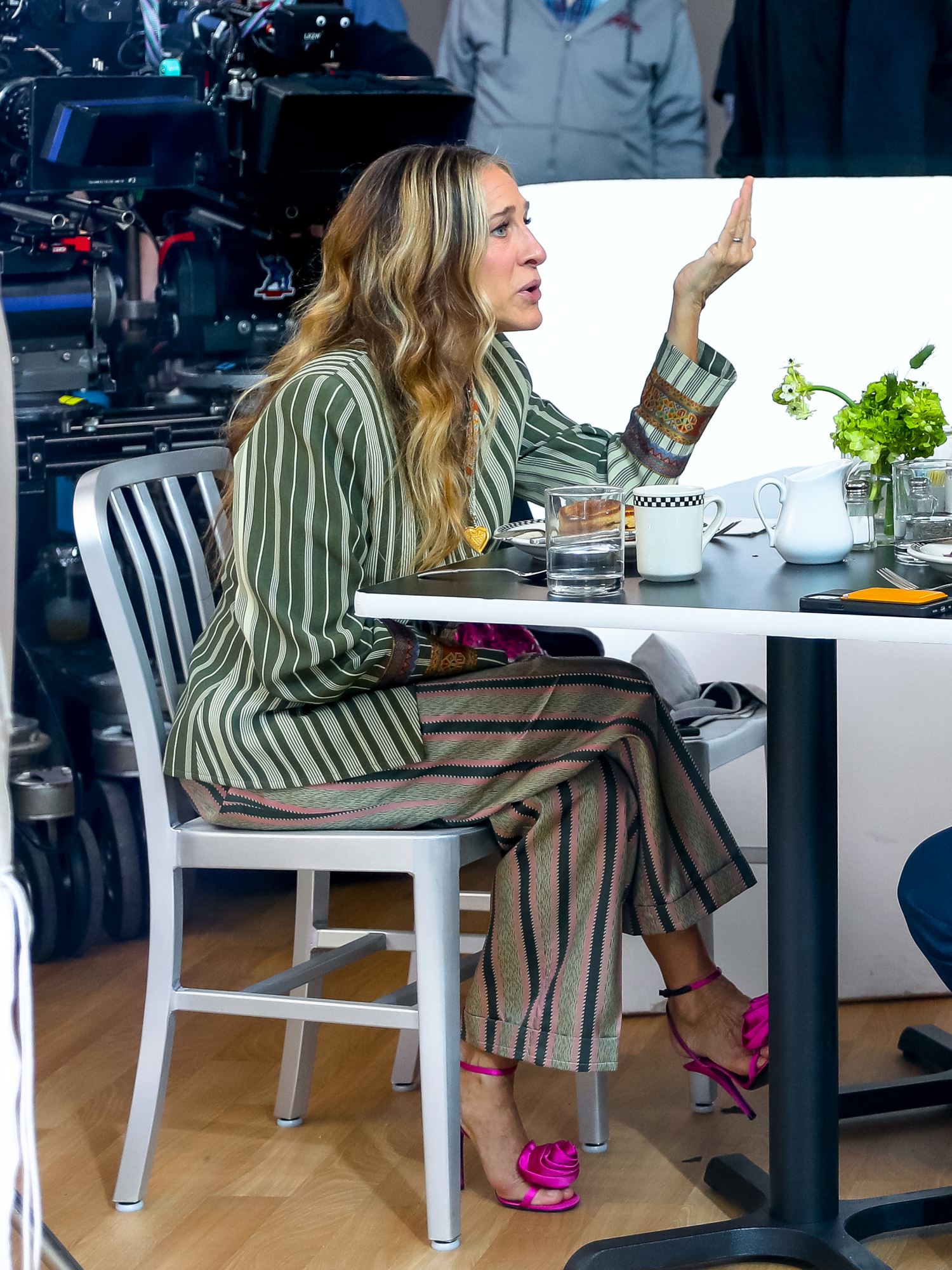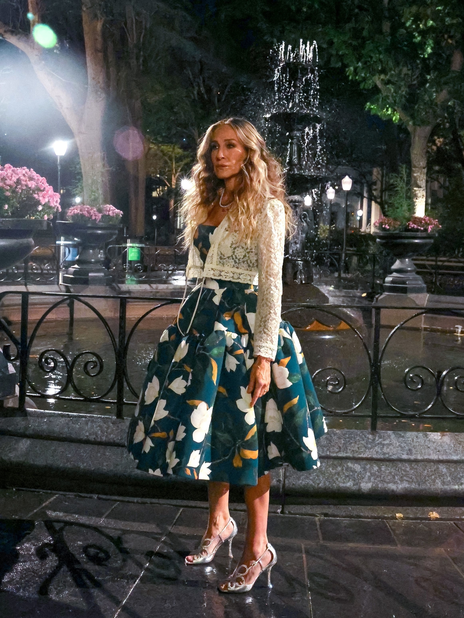 Muhkeat helmat ovat aina olleet Bradshaw’n tyylin kulmakiviä. Yksi ihastuttavista asuista esittelee kukkamekon ja lyhyen neuletakin kombon, joka on kerrassaan hurmaava.
