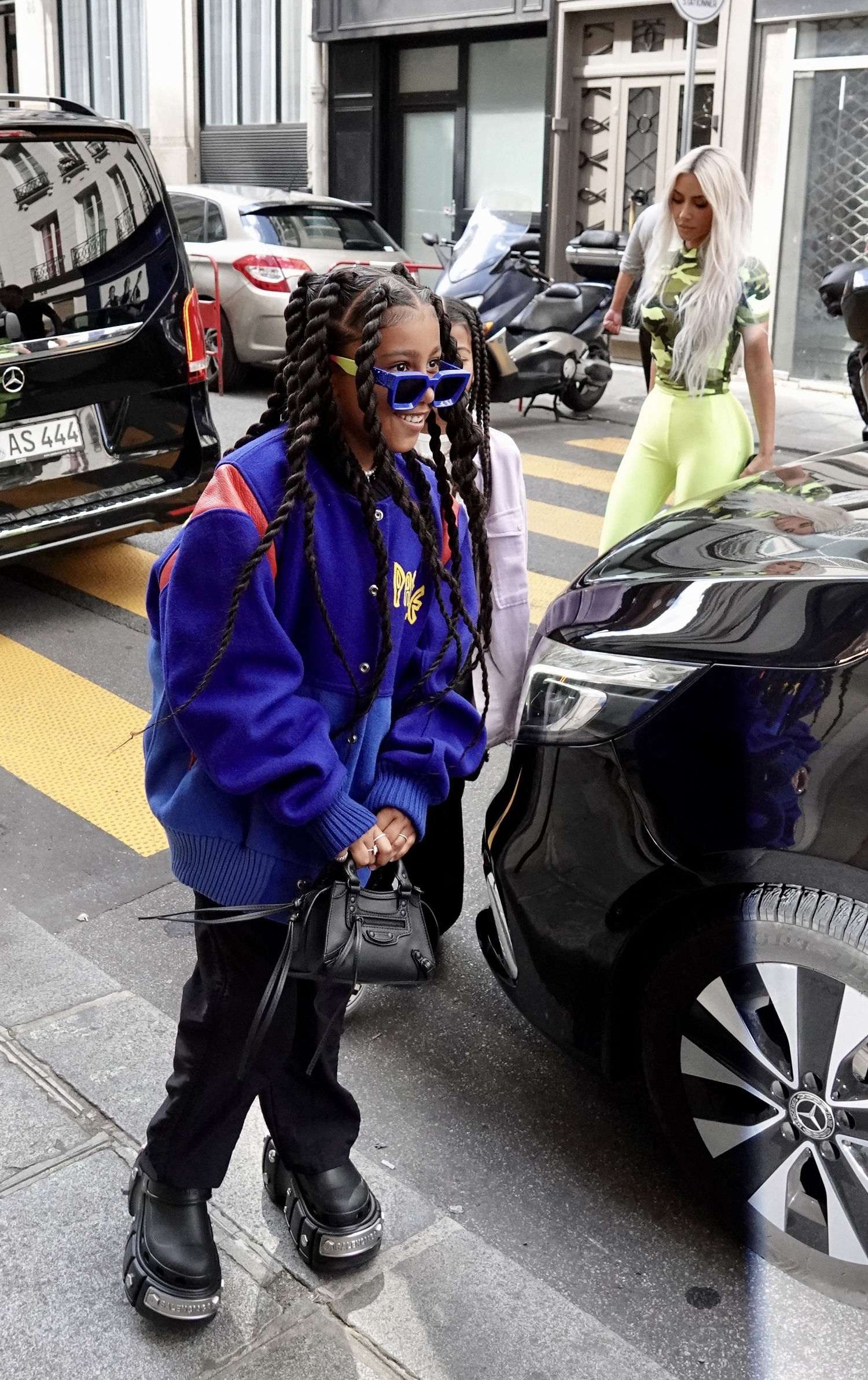 North nähtiin Pariisin muotiviikolla yhdessä äitinsä kanssa. North oli pukeutunut Pastellen collegetakkiin, joka on nähty aikoinaan Westin yllä.