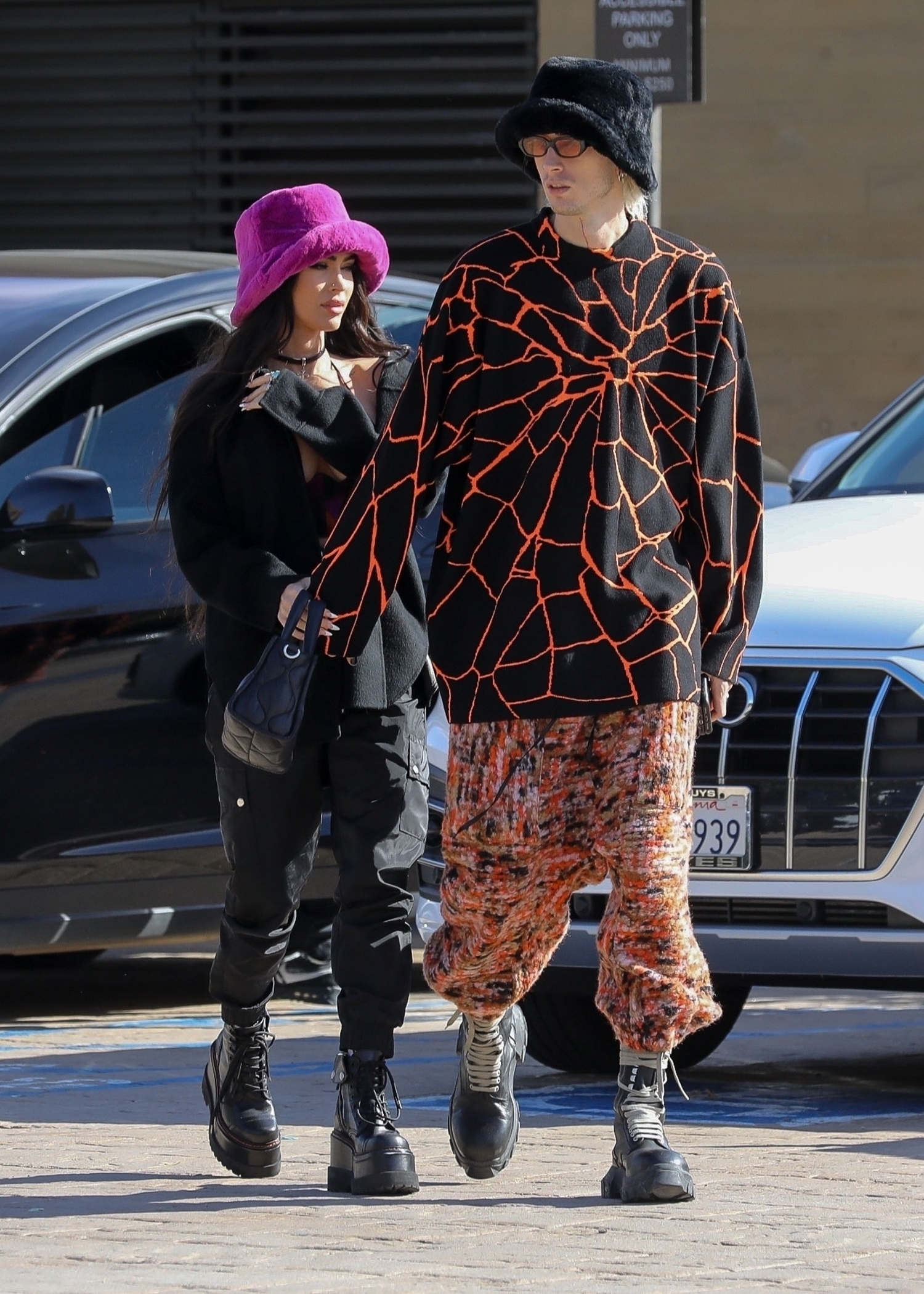 Myös Hollywoodin tähtipari näyttelijä-malli Megan Fox ja räppäri Machine Gun Kelly suosivat pörröhattuja. Heidät bongattiin pukeutuneena pinkkiin ja mustaan versioon trendihatusta.