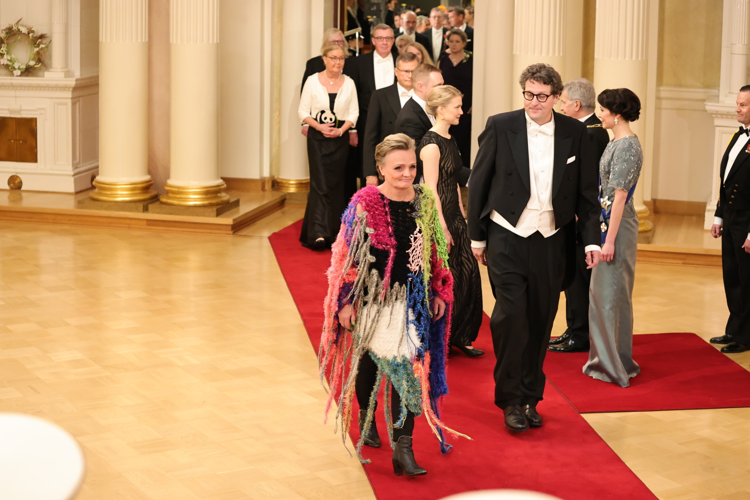 Värejä, hapsuja ja tekstuuria – niistä oli pukusuunnittelija Tiina Kaukasen Linnan juhlien asu tehty.