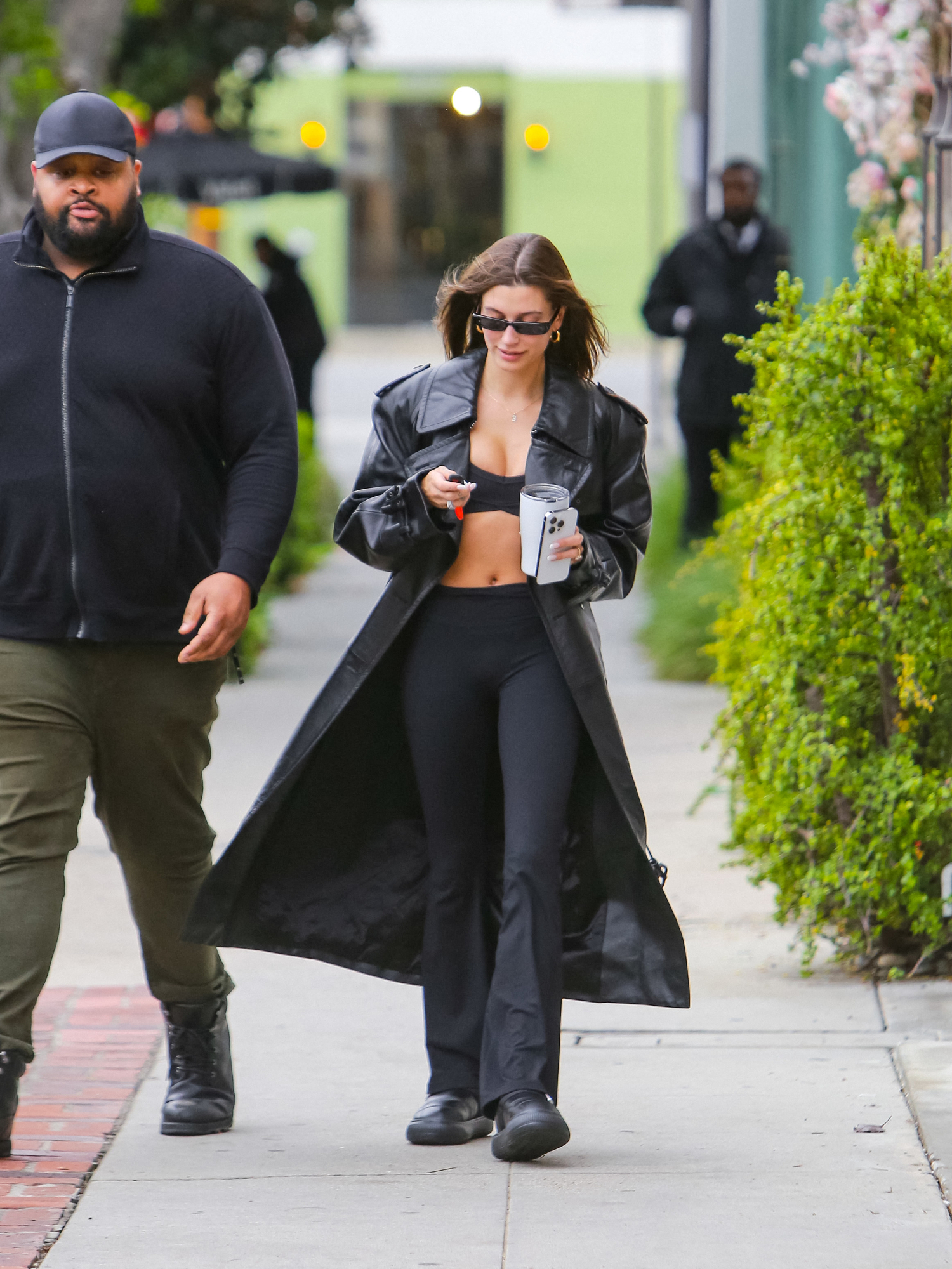 Huippumalli Hailey Bieber osoitti, miten salille saavutaan tyylikkäästi: jumppapöksyt jalkaan, urheiluliivit ylle, takki päälle ja menoksi.