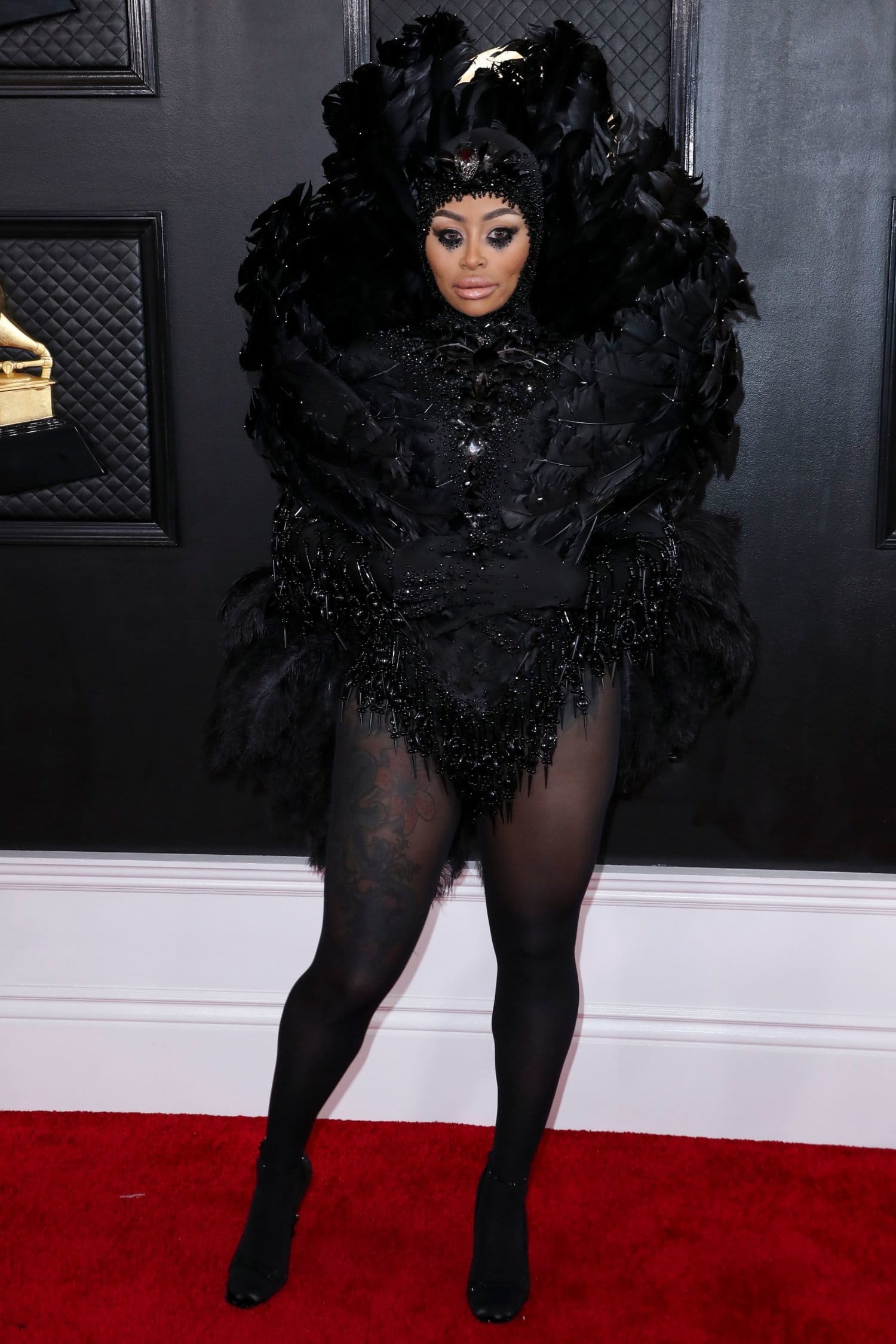 Tosi-tv-tähtenä ja mallina tunnettu Blac Chyna, 34, luotti goottihenkiseen asuun Grammy-gaalassa. Blac Chynan yllä nähtiin suuria, mustia sulkia. Näyttävän asukokonaisuuden kruunasi verenpunaiset korut ja dramaattinen meikki.