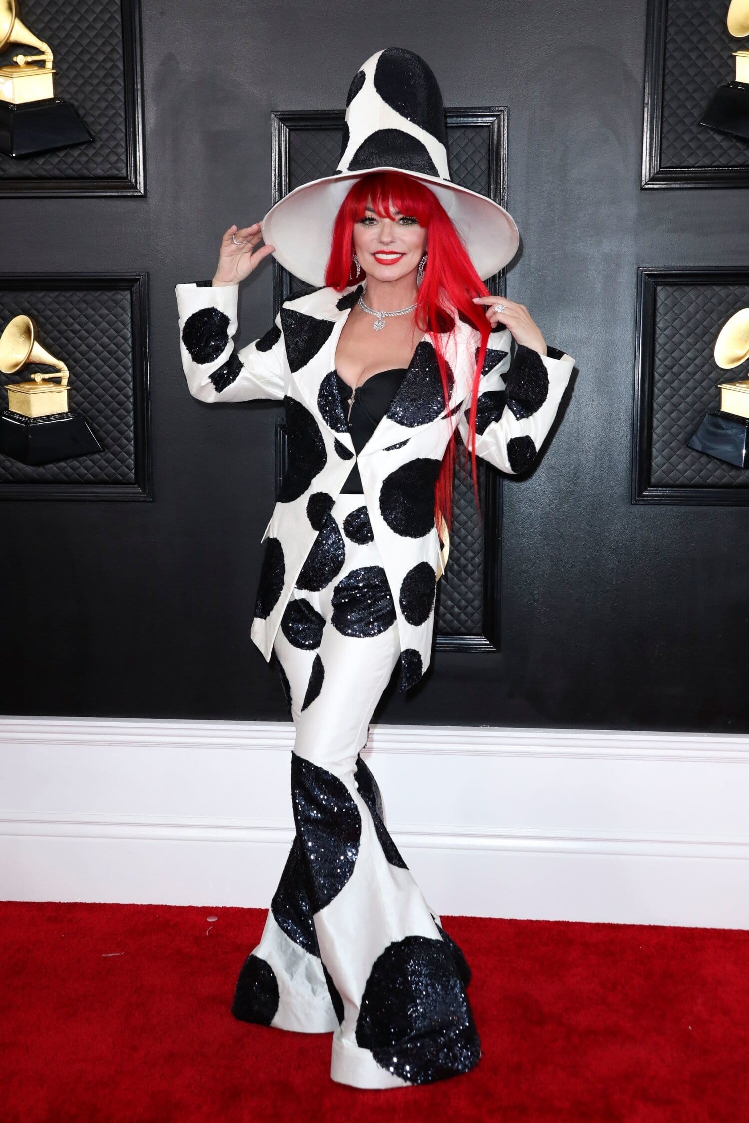 Viisinkertainen Grammy-voittaja Shania Twain, 57, käänsi katseita punaisella matolla pukeutuessaan musta-valkoiseen, muotisuunnittelija Harris Reedin käsialaa olevaan housupukuun. Twain nähtiin niin ikään kirkkaanpunaisissa hiuksissa ja musta-valkokuosisessa, valtavassa hatussa.
