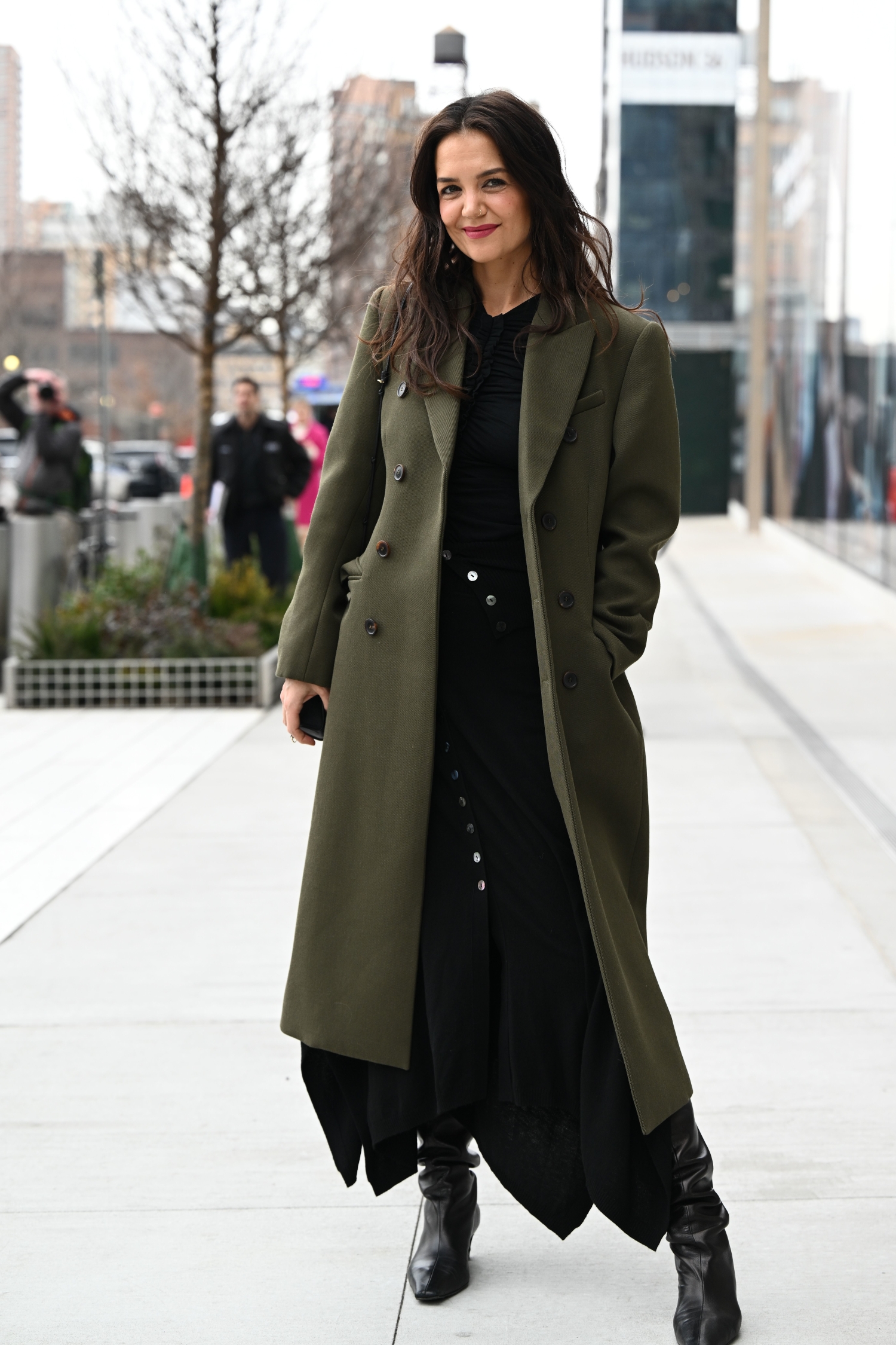 Yhdysvaltalainen näyttelijä Katie Holmes, 44, bongattiin New Yorkin muotiviikoilla suunnittelija Ulla Johnsonin muotinäytösvieraana. Hän oli pukeutunut pitkävartisiin nahkasaappaisiin ja mustaan hameeseen. Myös paita oli musta, joten päälle puettu vihreä takki kiinnitti asun huomion.