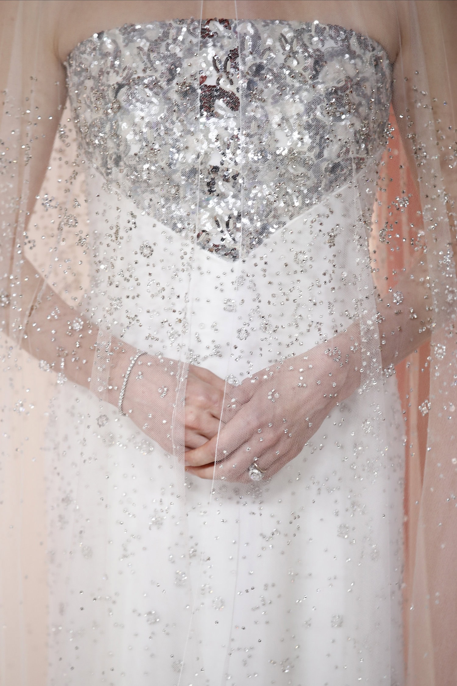 Williamsin valkoinen asu oli brodeerattu hopeilla ja valkoisilla käsinommelluilla paljeteilla, strasseilla ja helmillä. Asun selässä oli valkoinen rusetti. Kokonaisuuden kruunasi läpinäkyvä tylliviitta. Koko asun luomiseen kului yli 900 tuntia.