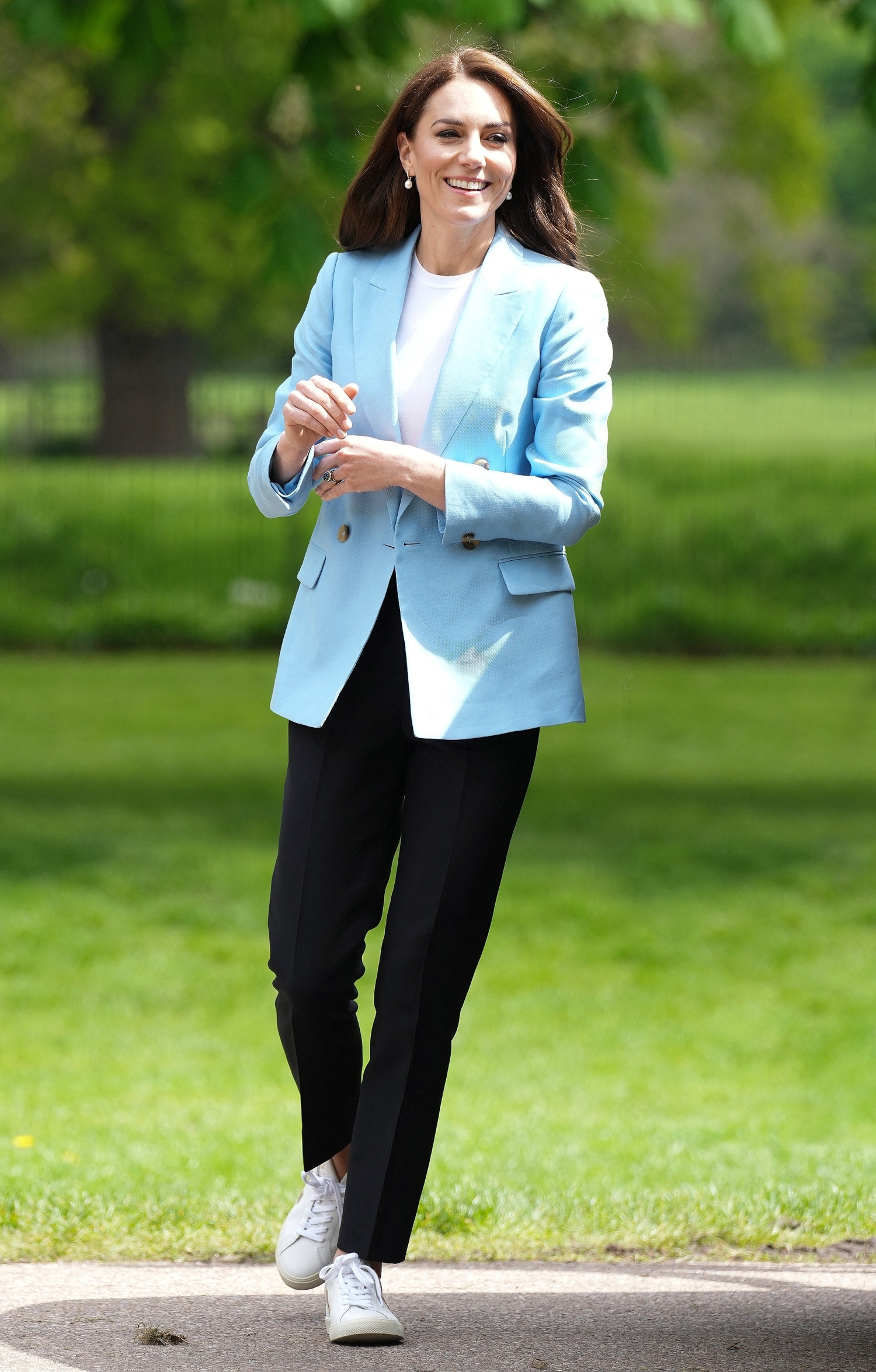 Middleton tarjoili kruunajaisviikonloppuna asujen muodossa pettämättömän kolmen suoran: terälehtikruunu, vaaleansininen jakku tennareilla sekä punainen voimakas jakkupuku.