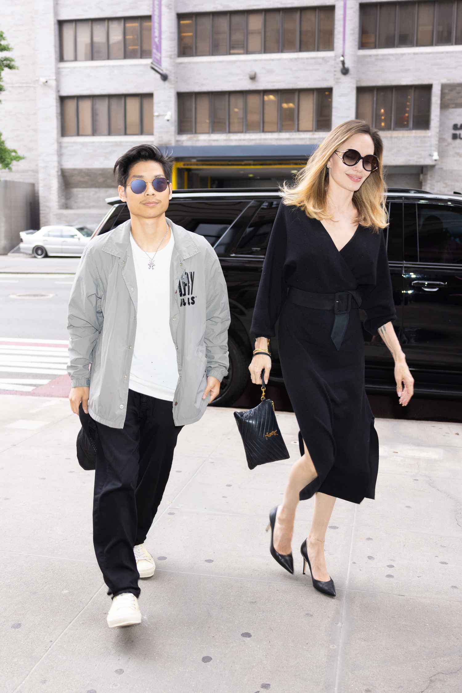 Sillä välin, kun odotamme Chloén kanssa tehdyn yhteistyön luomuksia, tarjoili Jolie New Yorkissa minimalistisen simppelin kietaisumekon. Mekko ylettyi alle polvien ja oli pitkähihainen. Vyötärölinjaa koristi paksu vyö. Kädessä Joliella oli muotitalo Saint Laurentin käsilaukku.