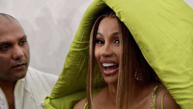 Artisti Cardi B, 30, osallistui muotitalo Gaurav Guptan Haute Couture -näytökseen viime viikon torstaina. Hän asteli eturiviin vihreässä asussa, jonka voimme epäillä olleen artisti Käärijän mieleen.