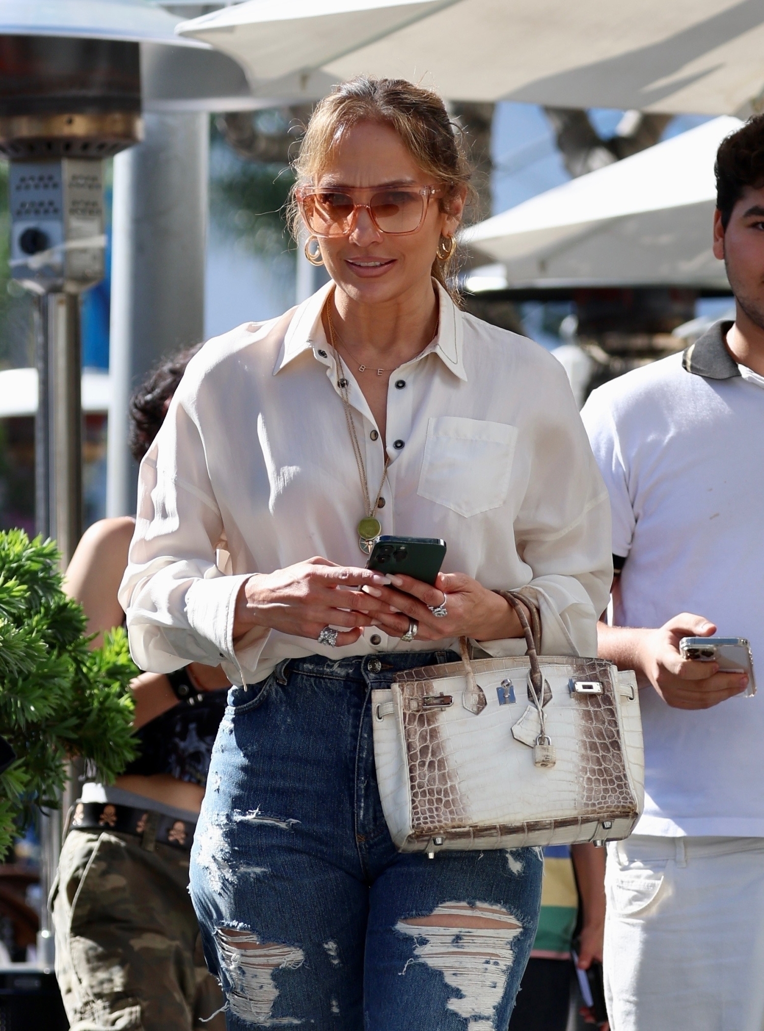 Tyylitaituri Jennifer Lopez, 54, vietti perheensä kanssa aikaa Los Angelesissa. Päälleen hän oli valinnut revityt siniset farkut ja rennon kauluspaidan.