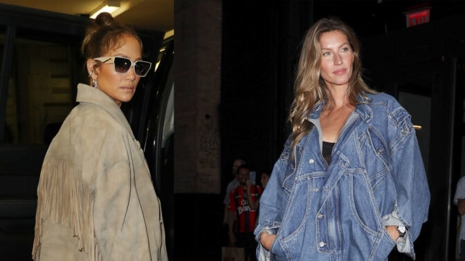 Housuttomuuden trendi on jatkunut jo pitkään, ja mikäli Lopezin ja Bündchenin asuja on uskominen, jatkuu se edelleen. Kaksikko saapui samantyylisissä asuissa eli jättivät housut kotiin. Housujen virkaa ajoivat väljät takit.