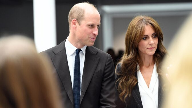 Prinssi William koordinoi asunsa laivastonsinisillä housuilla ja kravaatilla. Asusta yhtenevän teki tummanruskea vyö ja mokkakengät.