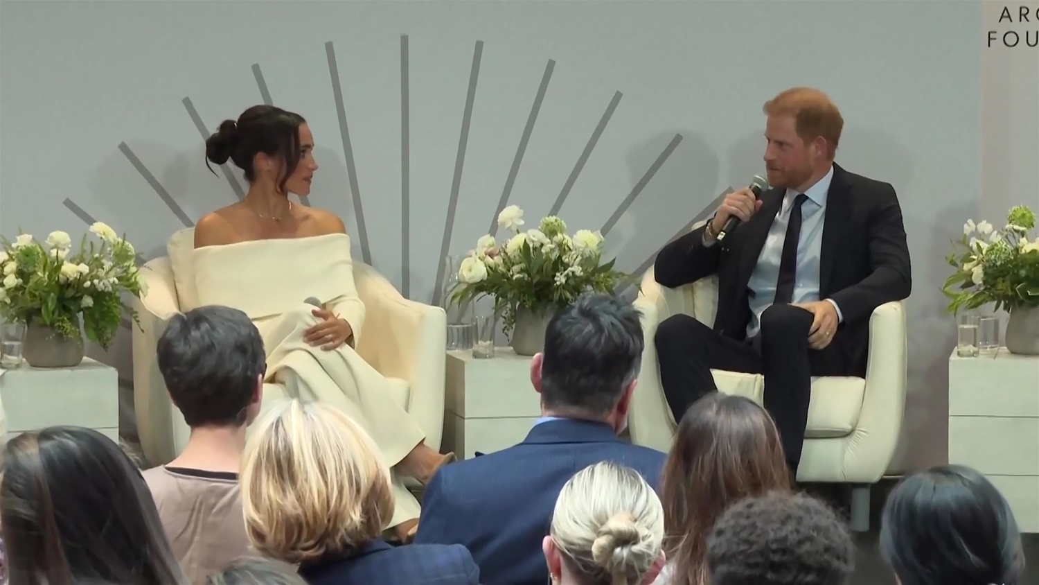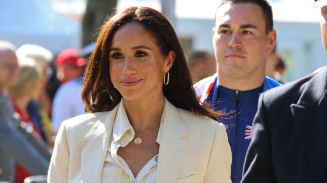 Myös Meghan Markle otti osaa trendiin ja esitteli off shoulder -bleiserin New Yorkissa. Kyseinen bleiseri sekä samaan komboon kuuluvat housut ovat muotimerkki Altuzarralta.