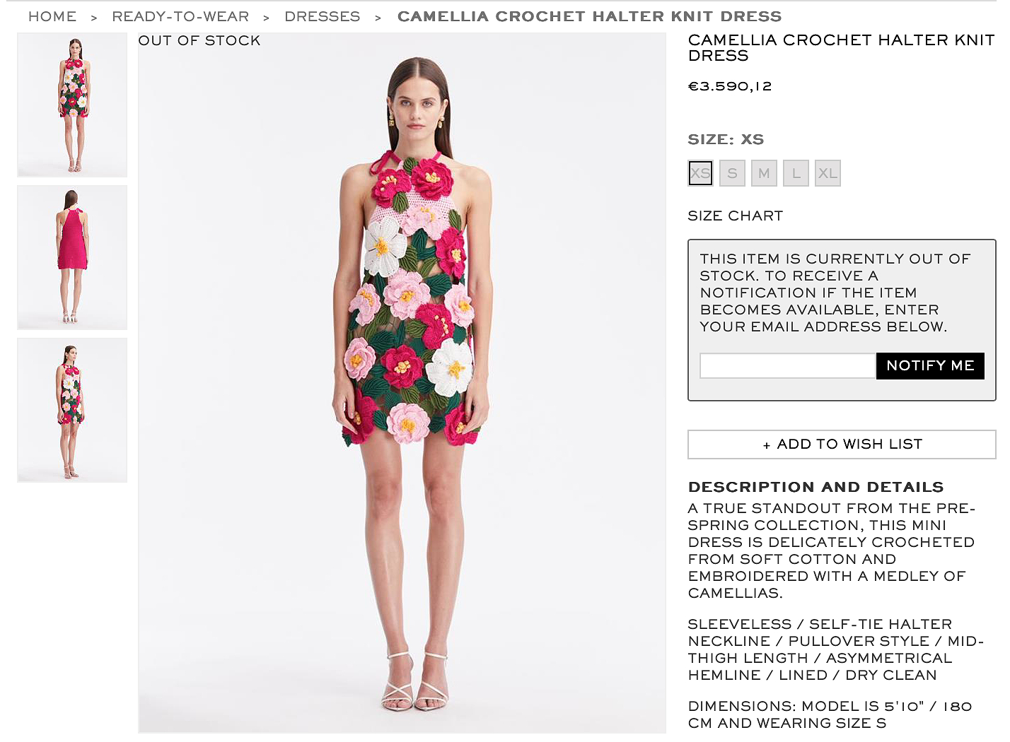 Ja koska kyseessä on luksusmuotitalo, on mekko varustettu 3590 euron hintalapulla.
