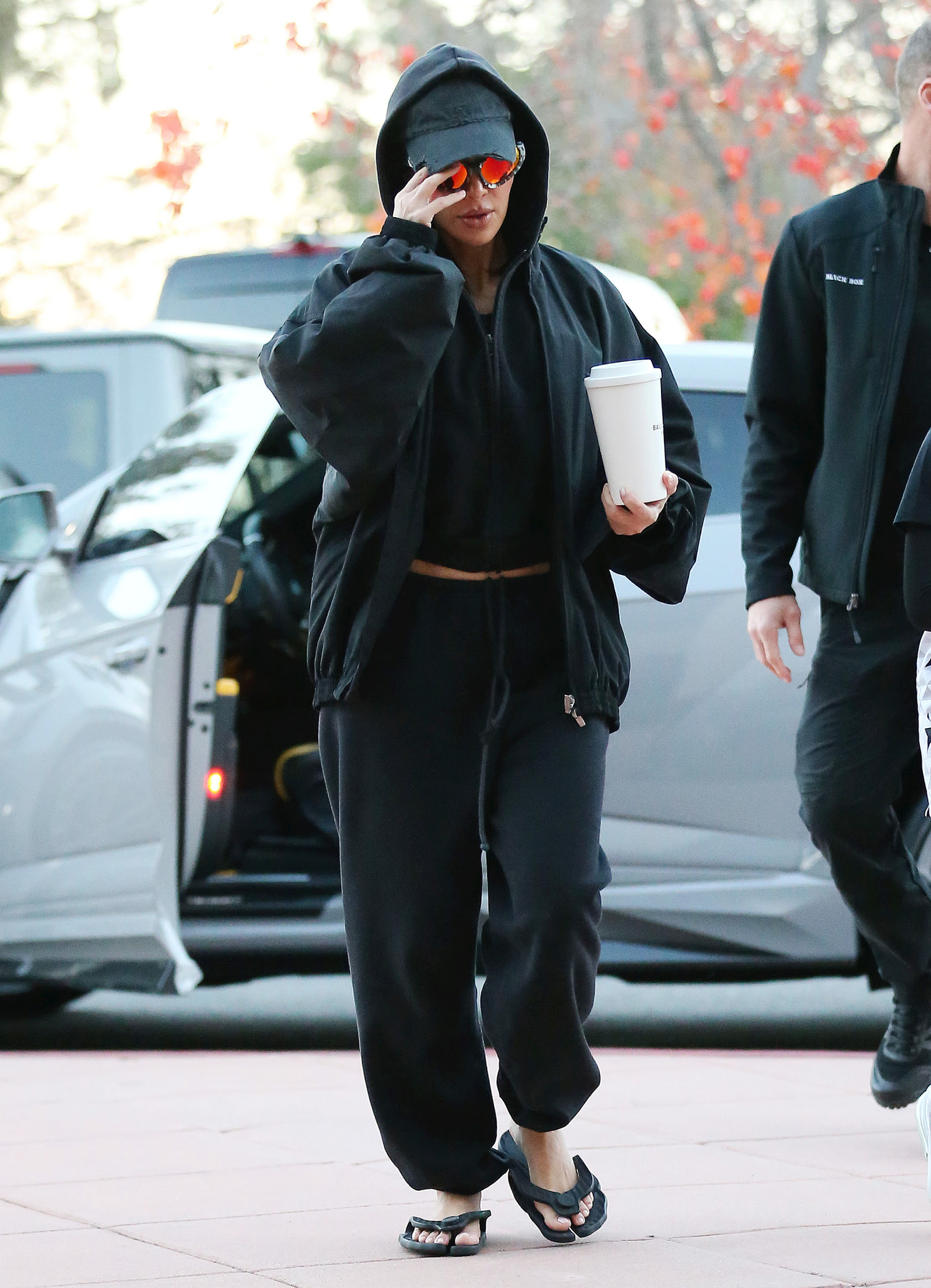 Kim Kardashian, 43, suosii rentoja ja väljiä tyylejä. Hupparit, collegehousut ja mustat lippalakit ovat muodostuneet hänen tyylinsä kulmakiviksi. Nyt asujen kaveriksi ovat päässeet useaan otteeseen mustat varvassandaalit.