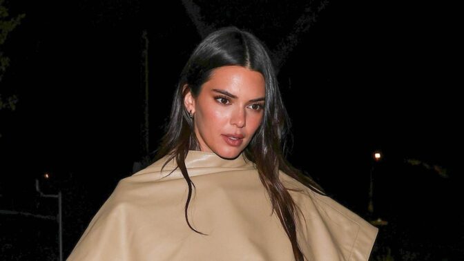 Jennerin yllä nähtiin nimittäin jo toistamiseen pienen ajan sisään ”viitalla” varusteltu takki, tosin tällä kertaa trenssi muodossa. Hiekan värisen nahkatrenssin kaveriksi oli siis valittu nilkkamittainen viitta, joka peitti myös kaulaa.