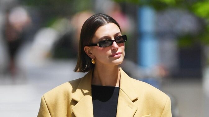 Muun muassa Hailey Bieber, 27, ikuistettiin jälleen kuviin asukokonaisuudessa, jossa pääosassa on mikromittainen musta vekkihame. Suloisen hameen kaveriksi hän oli valinnut rennon pitkän neuletakin, jonka hän oli napittanut kiinni.