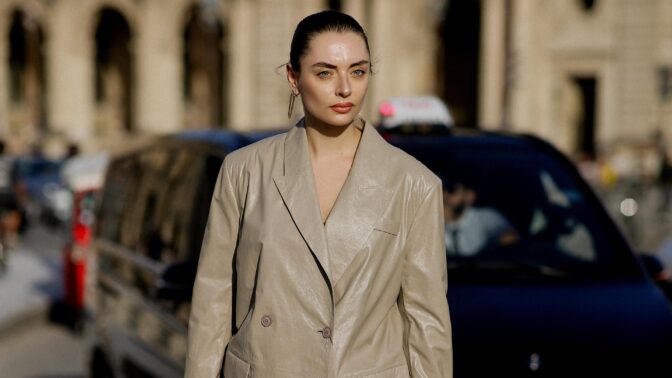 Aina trendikäs nahka näkyy myös jakuissa vuonna 2024. Tyylikäs ja hieman rock-henkinen nahkableiseri on täydellinen kaveri esimerkiksi minihameelle ja maihareille. Näitä jakkuja kannattaa metsästää esimerkiksi kirpputoreilta.