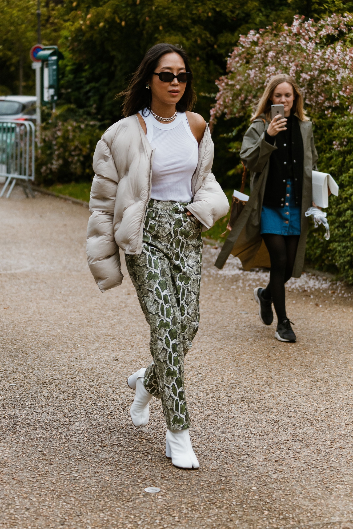 Kuoseista etenkin käärmekuosi on tänä vuonna in. Tällä housulookilla ei ainakaan jää seinäruusuksi, sillä sen verran räväkästä mallista on kyse.