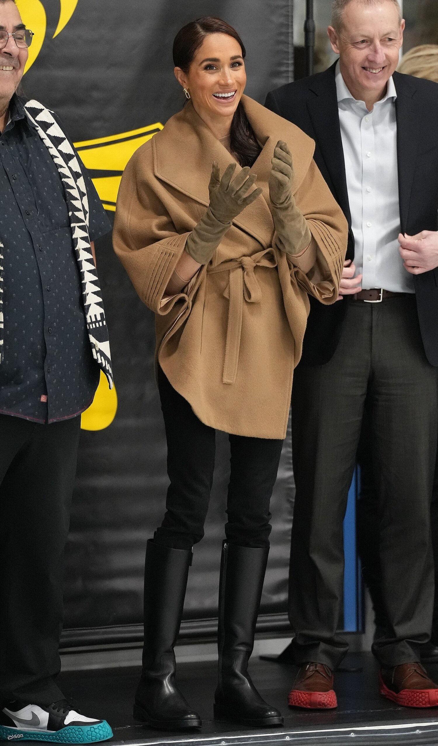 Viimeiksi kun Meghan bongattiin, oli hän yhdistänyt pillifarkut kamelinväriseen takkiin ja mustiin bootseihin.