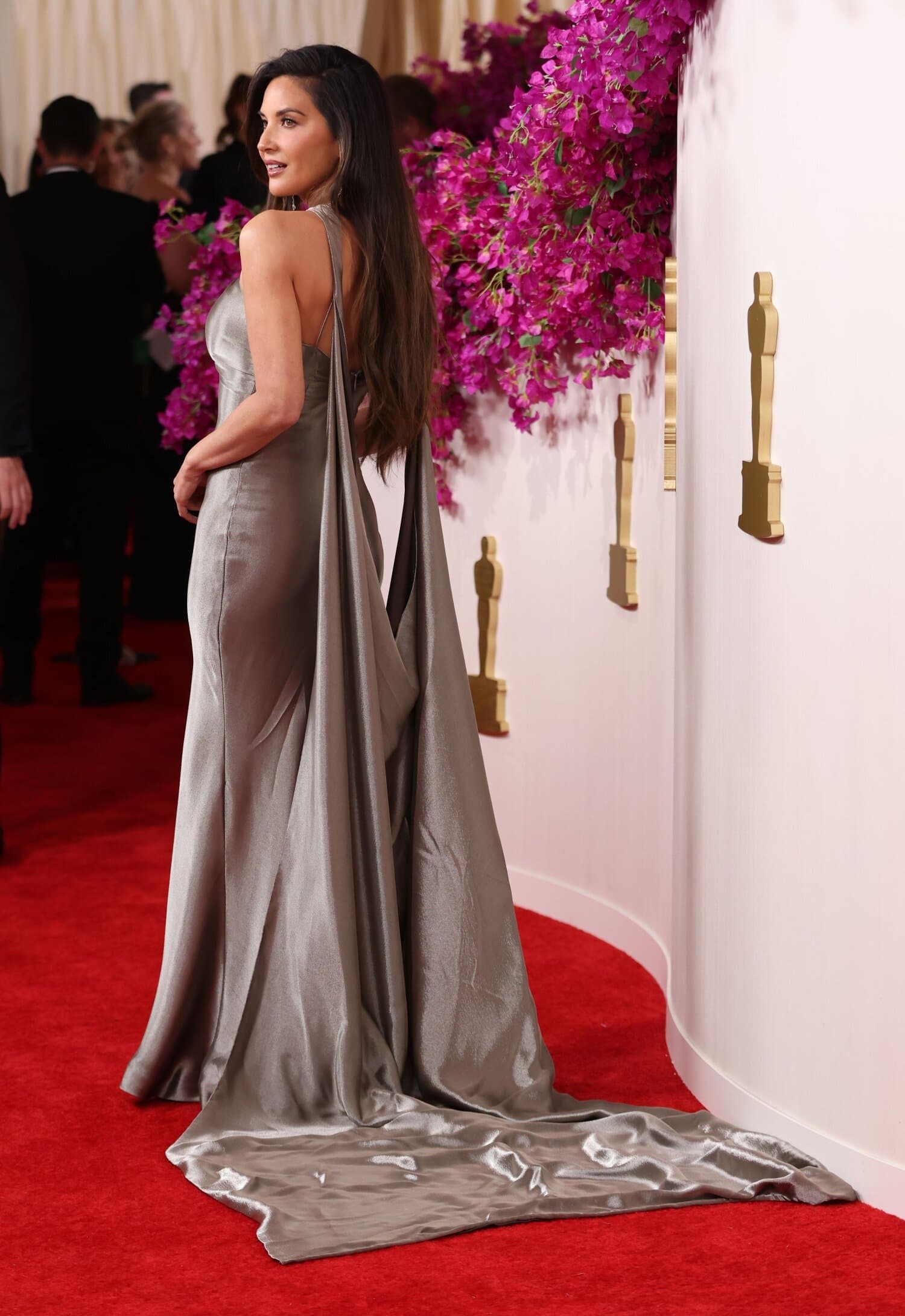 Yhdysvaltalainen näyttelijä Olivia Munn edusti muotitalo Fendin kustomoidussa puvussa. Mekko istui näyttelijän päälle täydellisesti ja harmahtava sävy loi arvokkaan vaikutelman. Tämä laahuksella varustettu asu oli ehdottomasti yksi illan upeimmista.