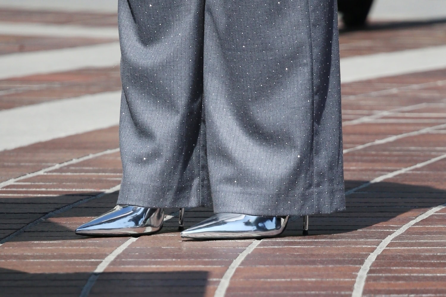 Särmää asuun toi hopeiset kengät. Metallinhohto on ollut jo vuosien ajan muodissa, eikä se ole menossa vielä mihinkään, mikäli Heidi Klumia on uskominen.