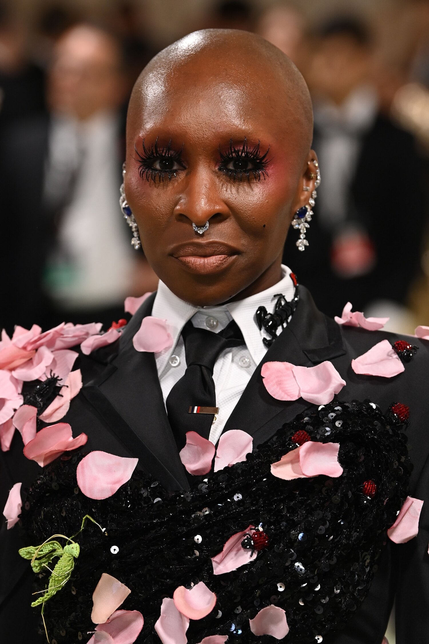 Cynthia Erivon meikissä silmiinpistävin yksityiskohta olivat näyttävät ripset, jotka tekivät ihanan loppusilauksen muutoin melko hempeään meikkiin.