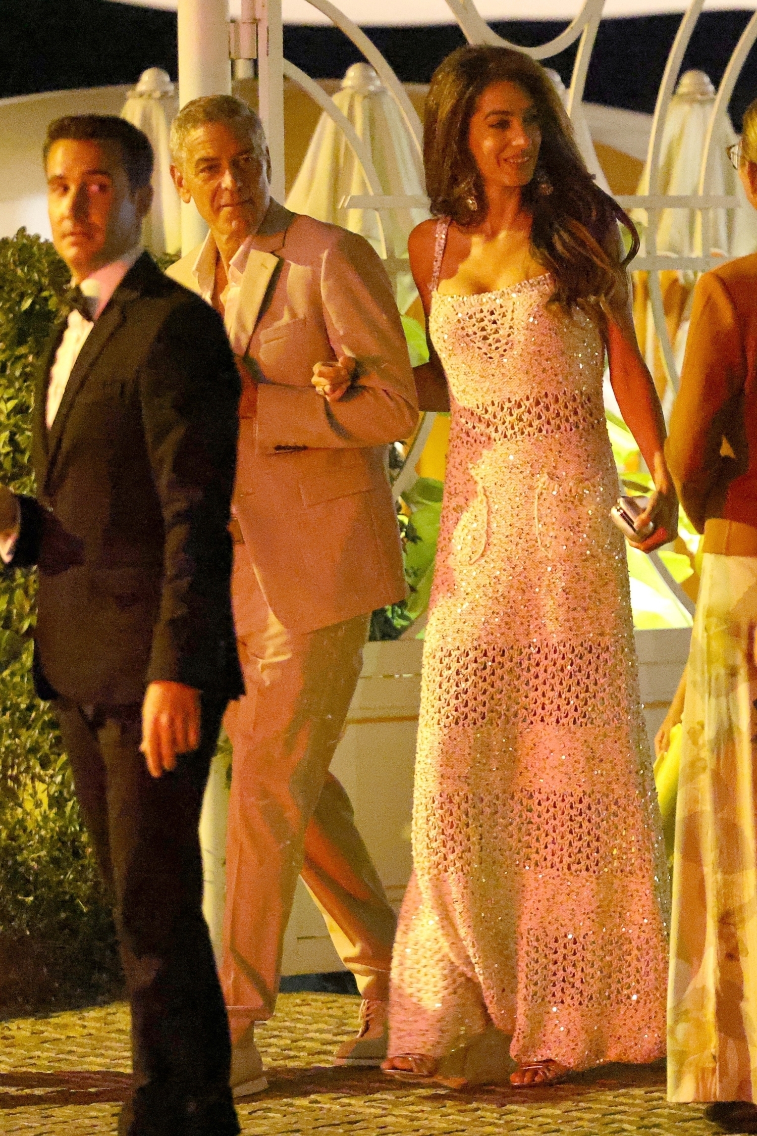 Tällä kertaa tyylitaituri Amal oli pukeutunut valkoiseen virkattuun maksimekkoon, joka viestitti vahvasti fiiliksiä häämekosta. Kyseinen mekko on muotitalo Chanelin Cruise mallistosta, joka esiteltiin Monacossa maaliskuussa vuonna 2022. Mekkoon hauskan lisän tuo sen pienet taskut etuosassa.