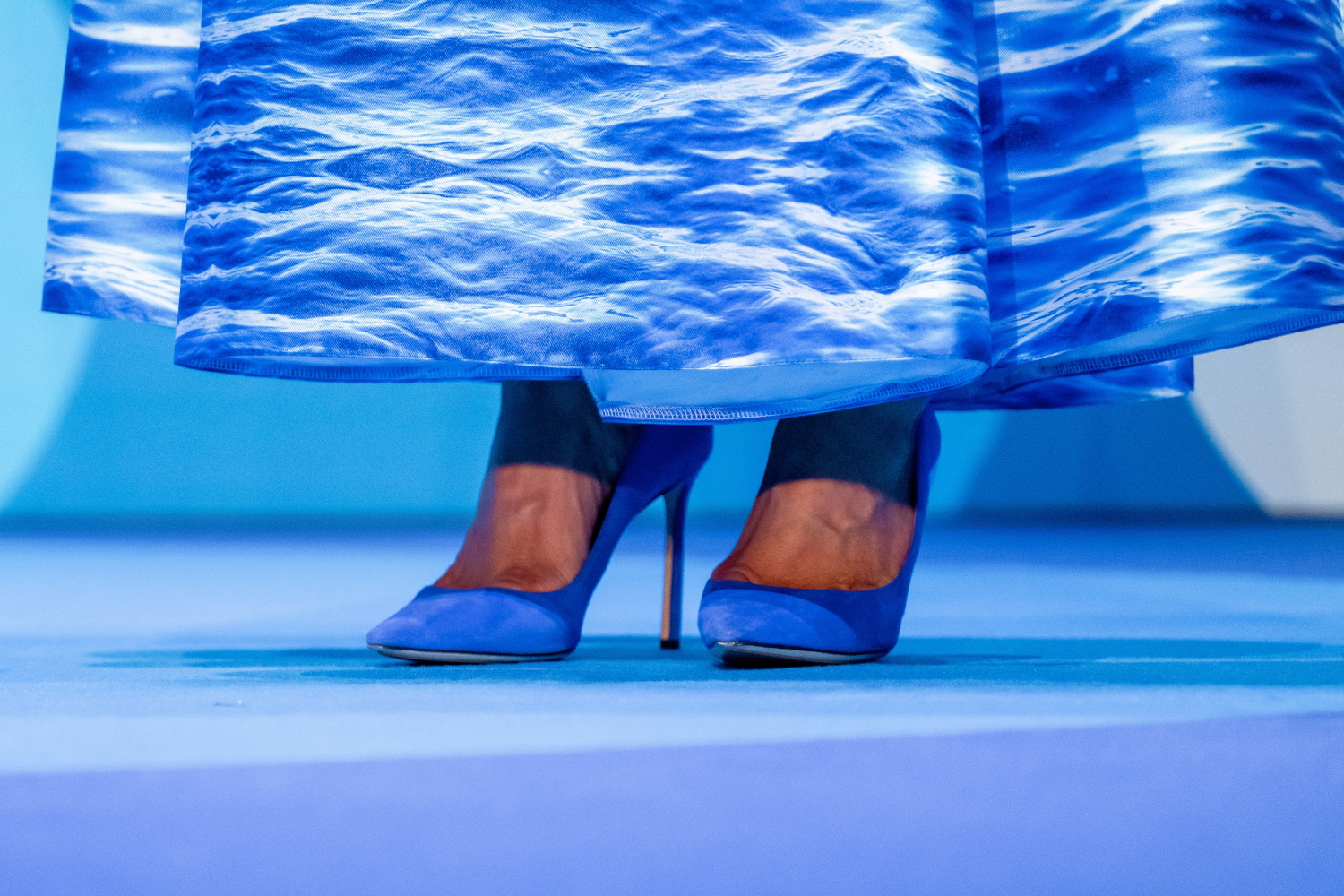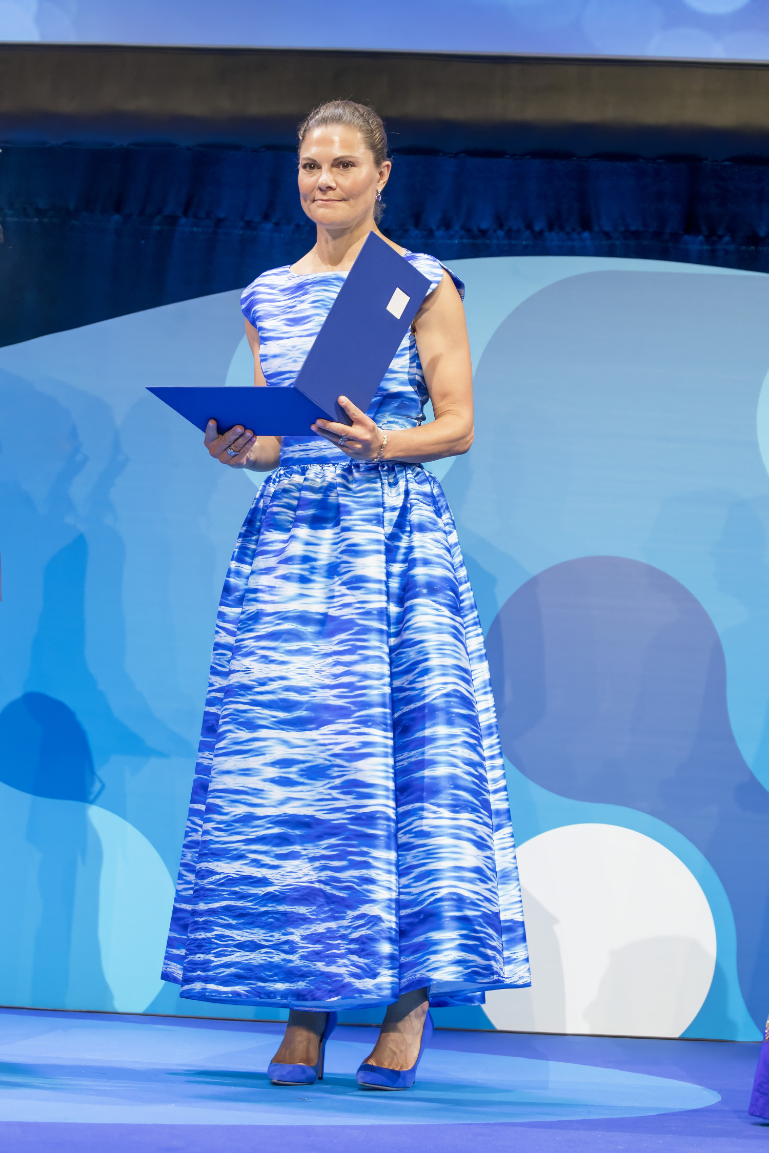 Seremoniassa palkinnon jakanut prinsessa Victoria oli pukenut ylleen asun, joka oli kuin vesi. Mekon värit ja veden inspiroima printti sopivat täydellisesti tapahtuman teemaan.