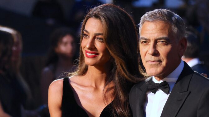 Myös George Clooney oli tapahtumassa mukana. Pariskunnan asut sopivat toisiinsa hopeisia asusteita myöten.