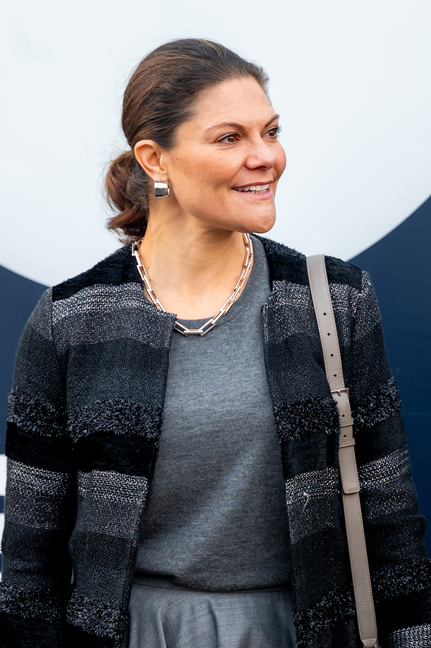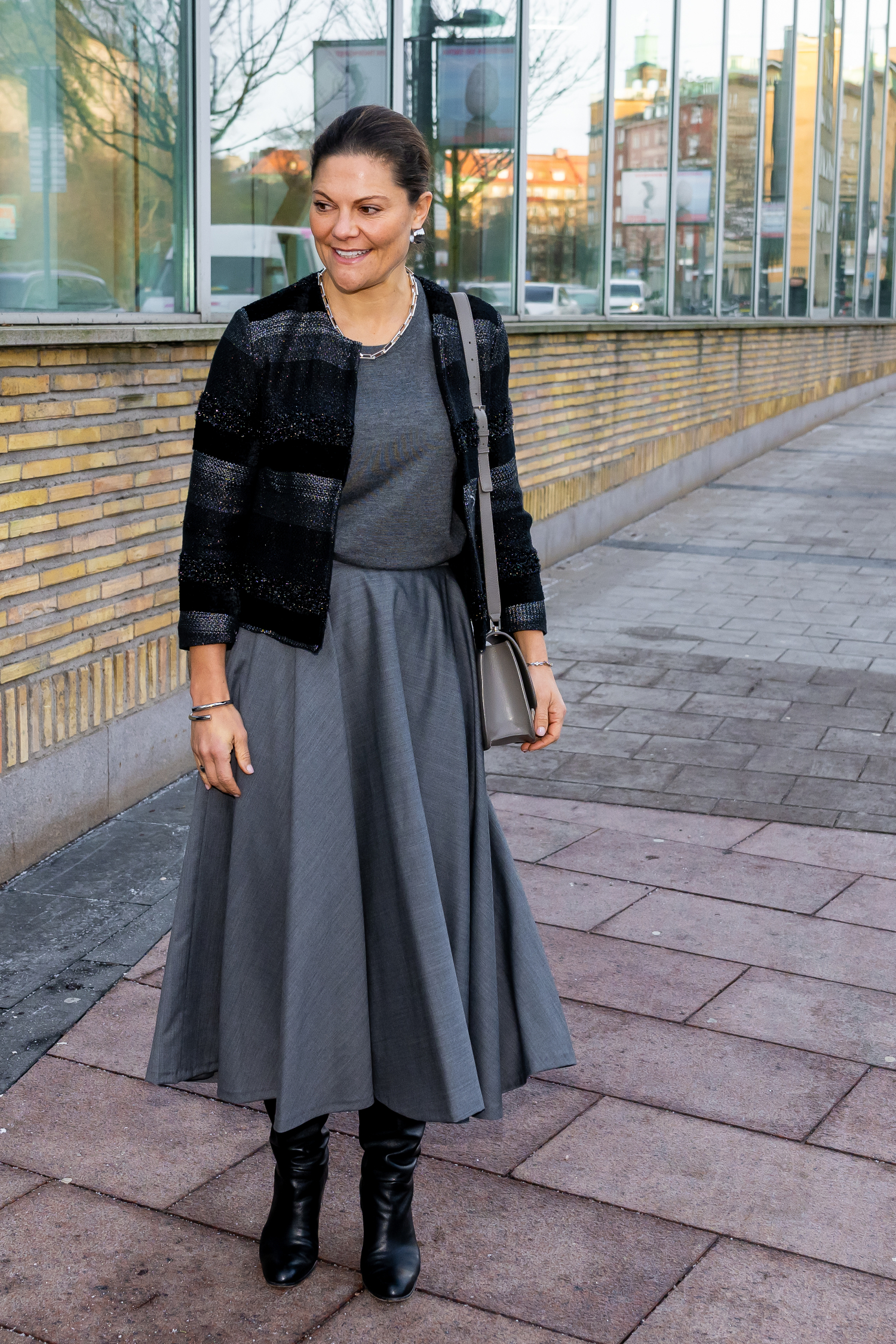 Kruununprinsessa edusti avajaisissa hillityllä, mutta arvokkaalla asukokonaisuudella. Asuun kuului harmaan hameen lisäksi bleiseri, jossa yhdistyvät mustan ja harmaan eri sävyt sekä erilaiset tekstuurit.