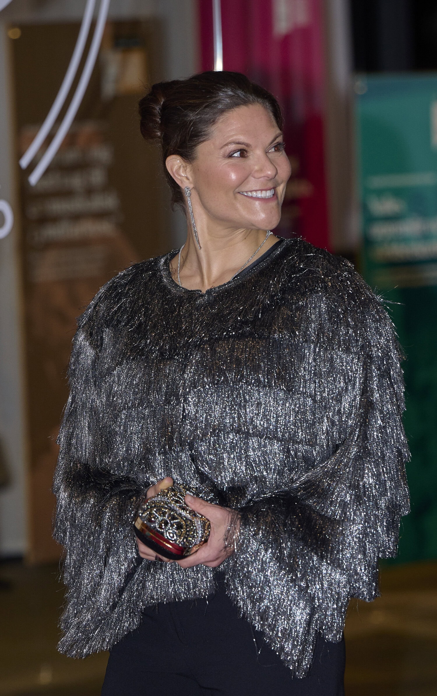 Ruotsin prinsessa saapui juhlan punaiselle matolle hohtaen salamavaloissa kuin diskopallo. Hänen hopea hapsutakki toimi varsinaisena katseenvangitsijana.