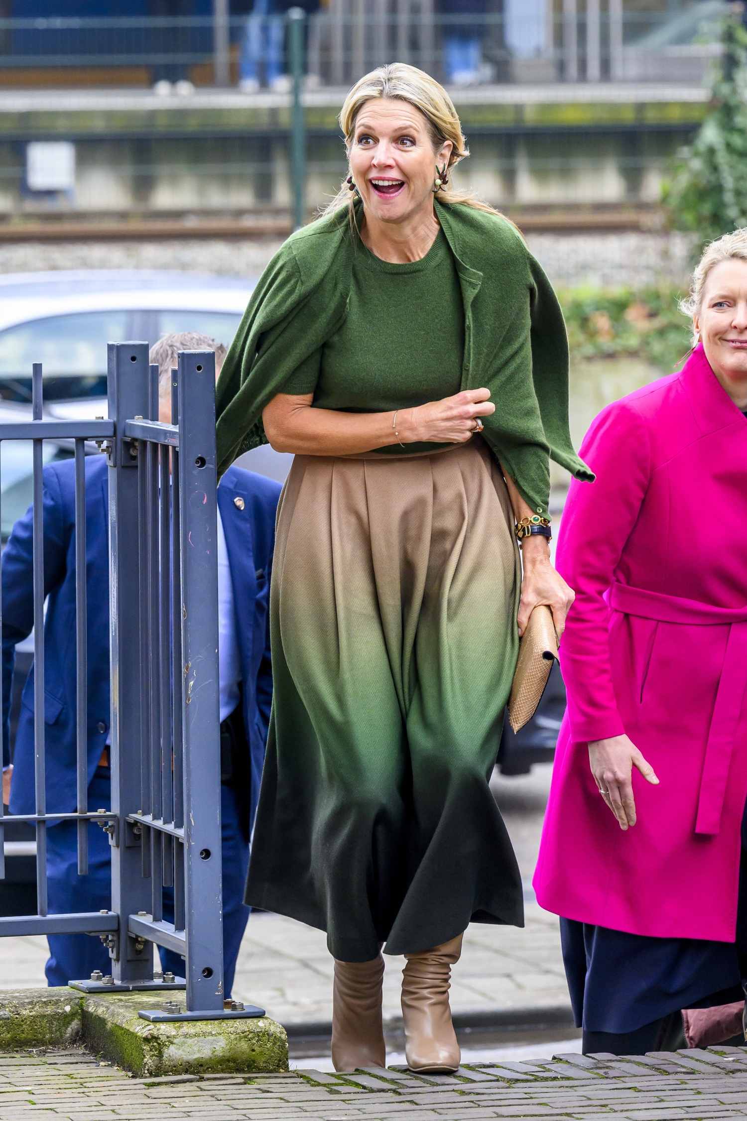 Kuningatar Maxima on selkeästi innostunut eräästä värikombosta. Hänet on nimittäin kuvattu jo kahdesti tällä viikolla asussa, joka on koostunut vihreän ja beigen yhdistelmästä.