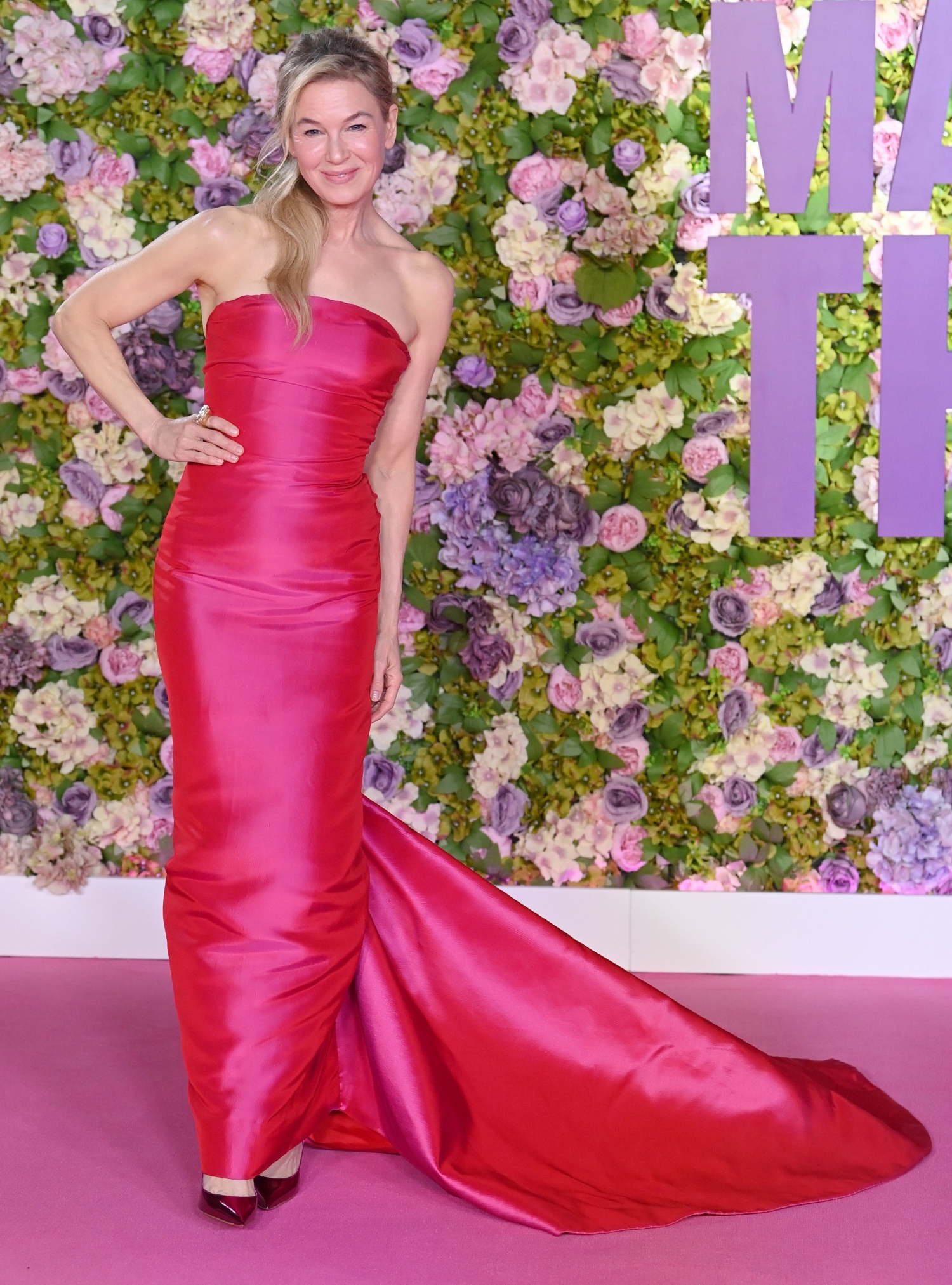 Zellweger oli valinnut ylleen olkaimettoman kirkkaan pinkin iltapuvun, joka istui hänelle täydellisesti. Muutoin yksinkertaisessa asussa nähtiin näyttävä laahus, joka toi siihen ihanaa särmää.