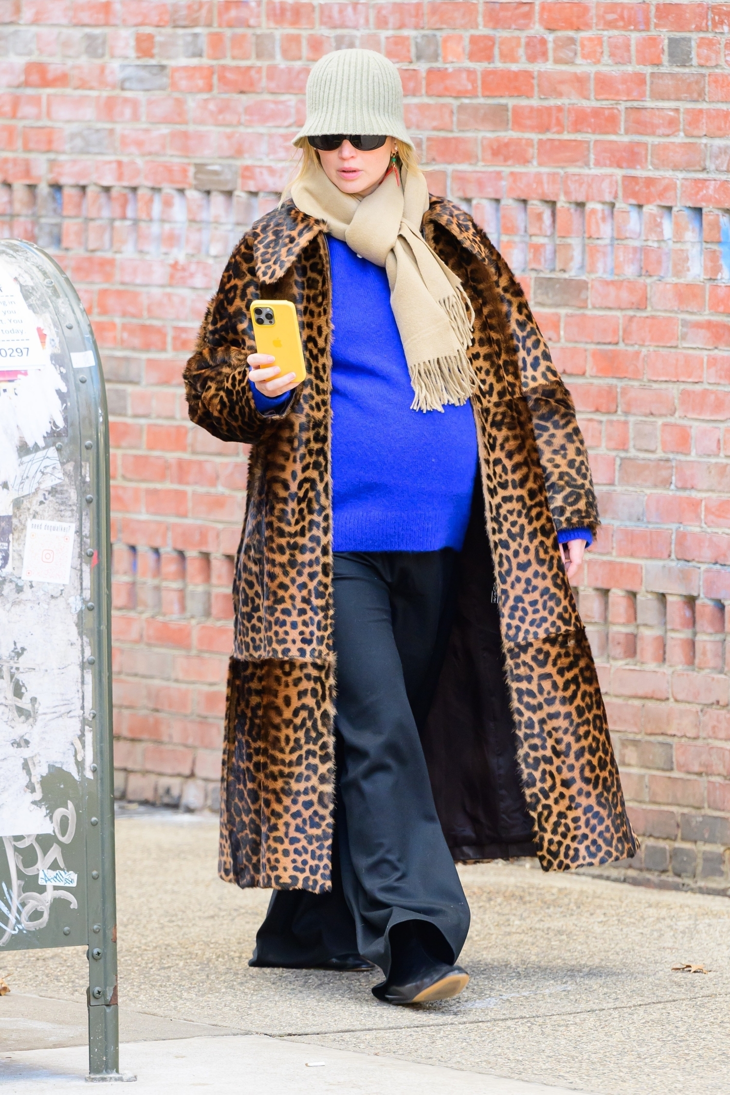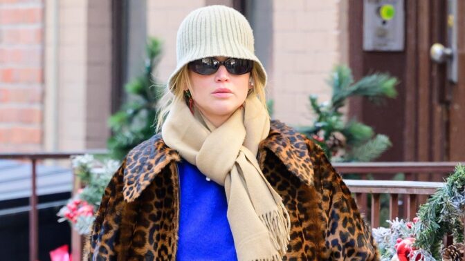 Näyttelijä säväytti New Yorkin kaduilla pukeutumalla rohkeaan koboltinsiniseen neuleeseen, joka toi kaivattua piristystä kaupungin harmaaseen katukuvaan. Lawrence täydensi sähäkkää ilmettä leopardikuosisella takilla, joka lisäsi asuun ripauksen asennetta.